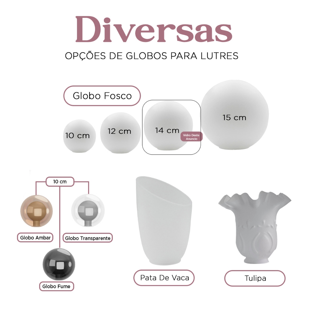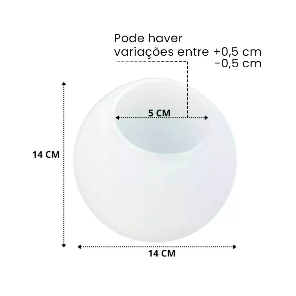 Globo De Vidro 14cm Fosco branco Leitoso e Esfera Para Pendente luminária ou lustres de teto