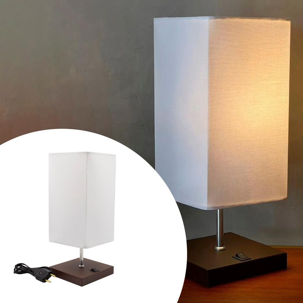 Abajur luminária de Mesa Quadrado Moderno Elegante Com Interruptor e Cúpula Decoração iluminação Casa Sala Quarto
