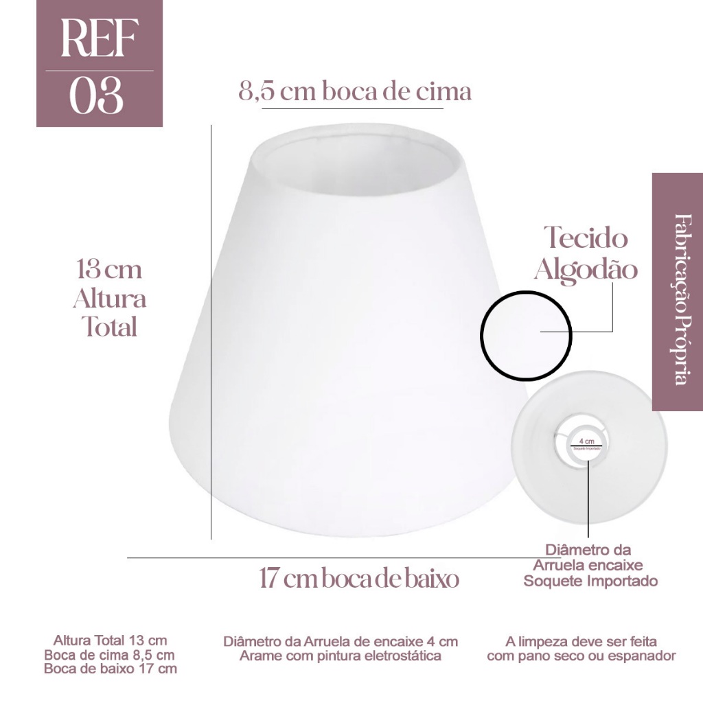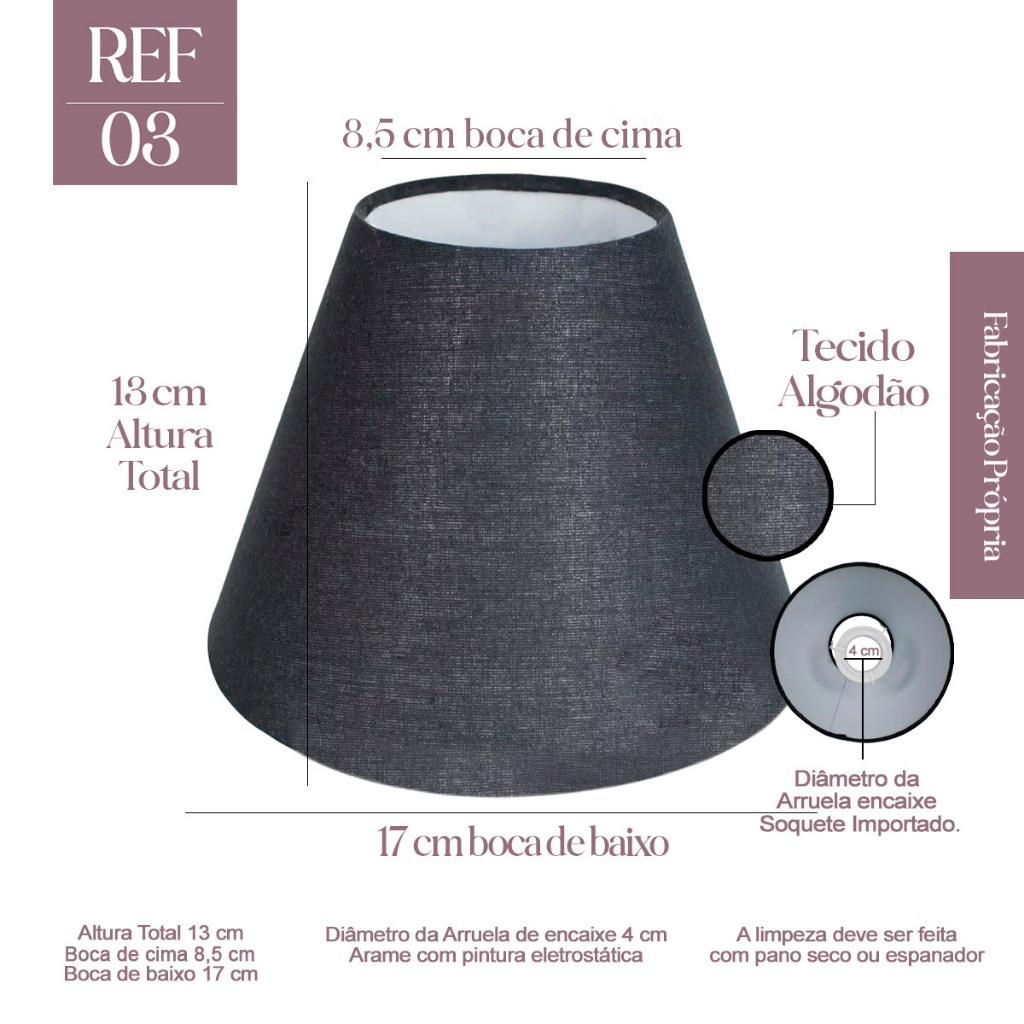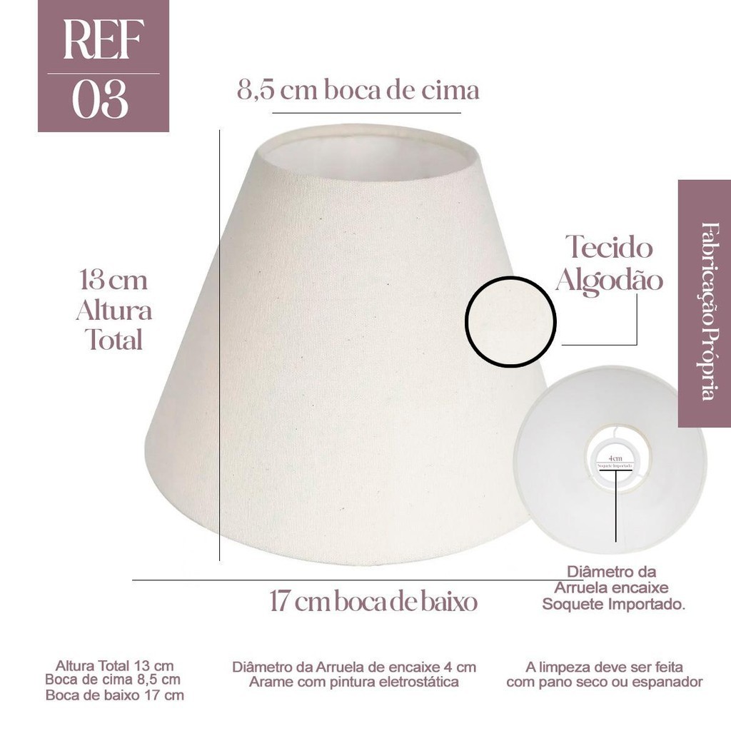 Cúpula para Abajur 13x8x17cm Tecido Algodão soquete Importado Cor Bege, Preta branco Ref 03