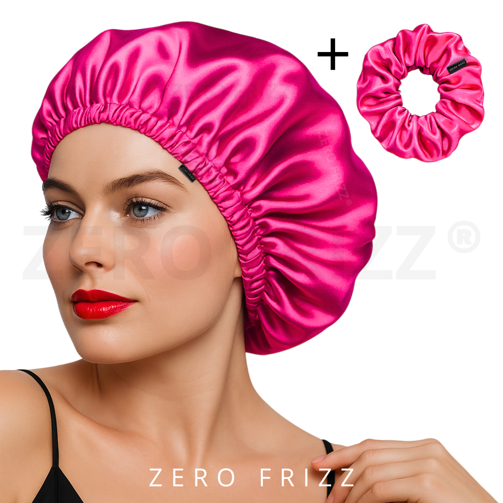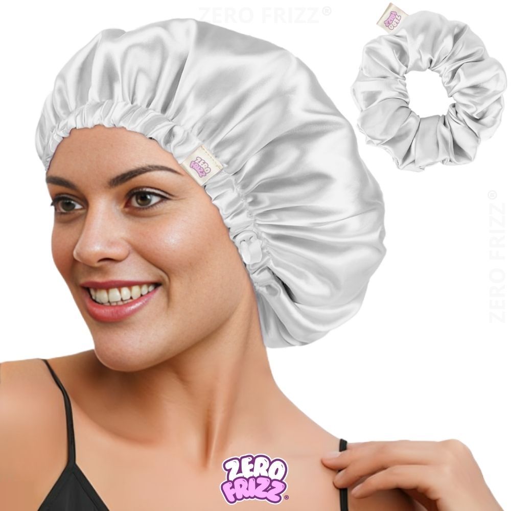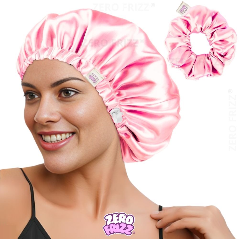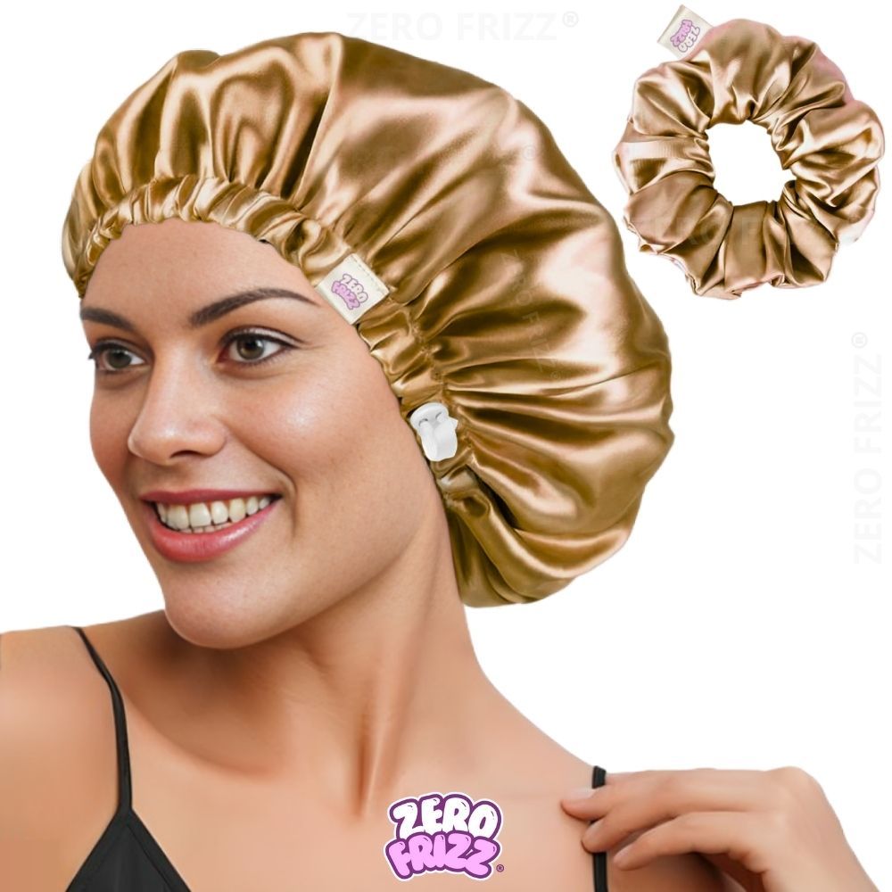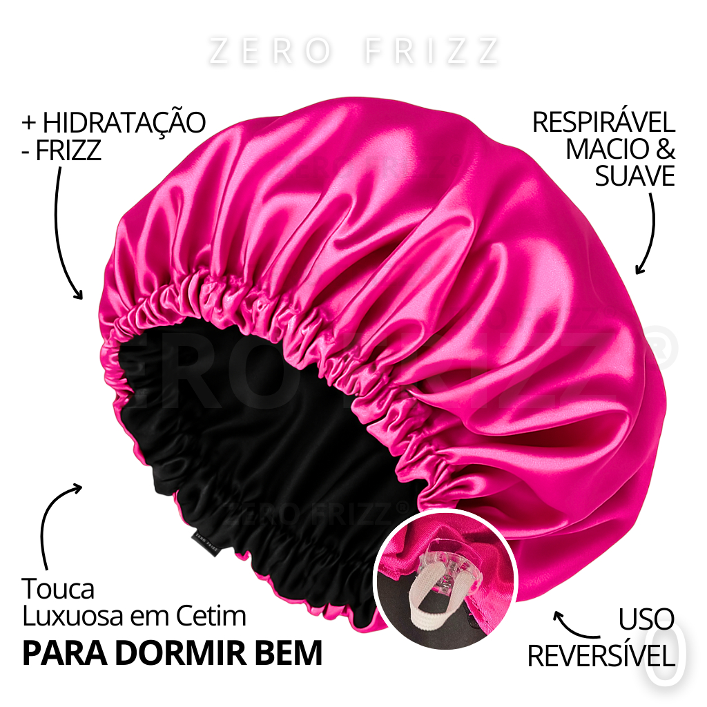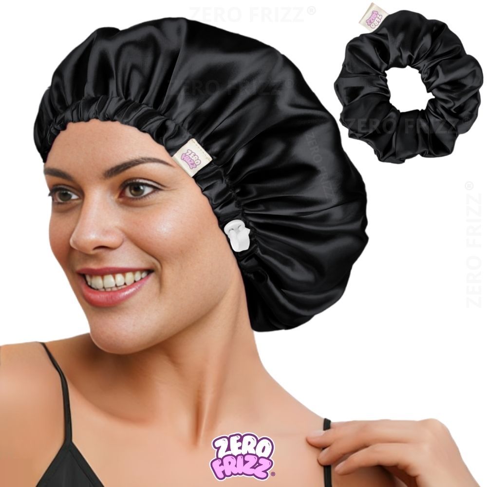 Kit ZERO FRIZZ® Touca de Cetim Premium Anti Frizz com Regulador e Dupla Camada + Scrunchie de Cetim
