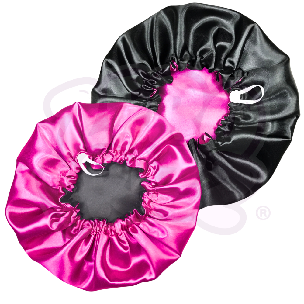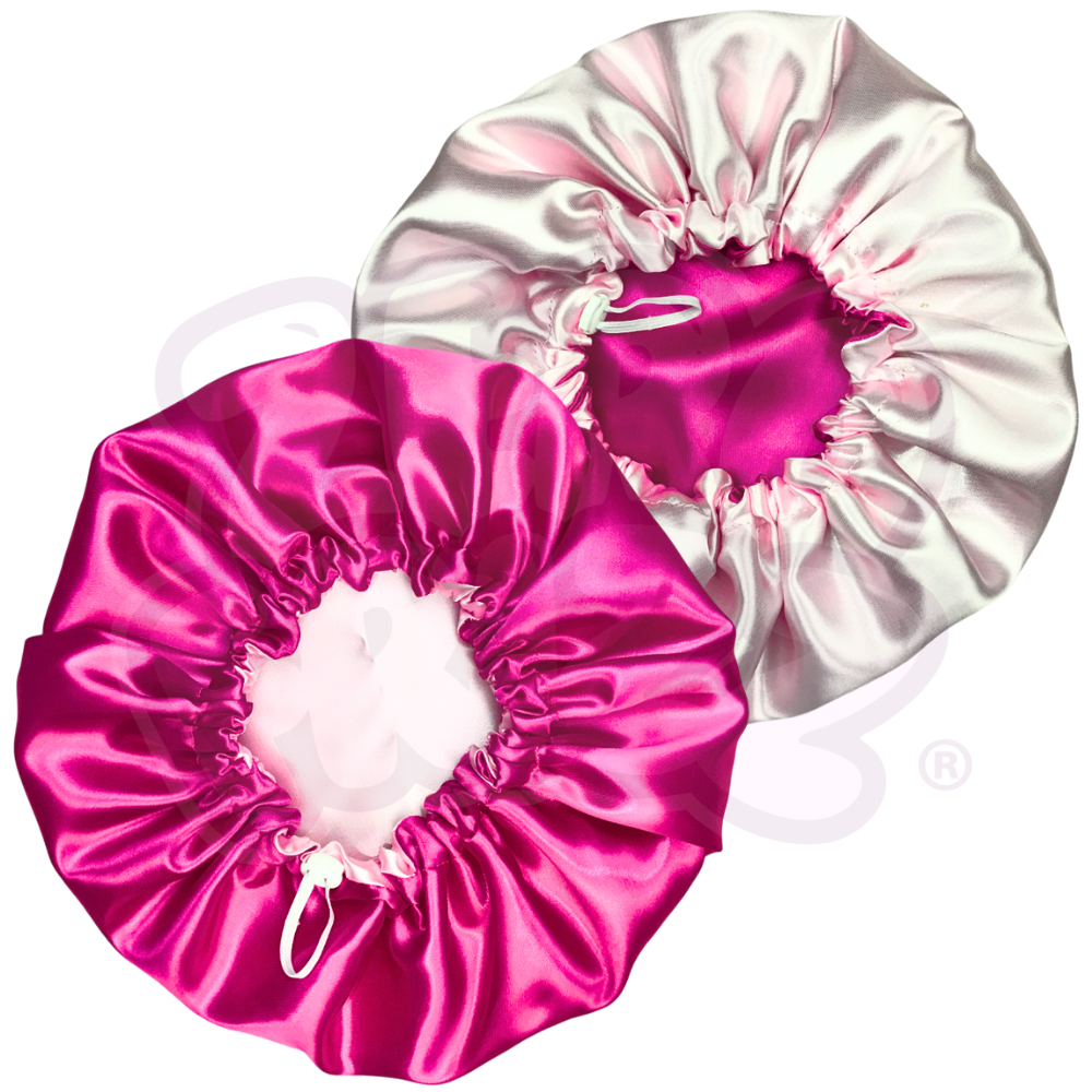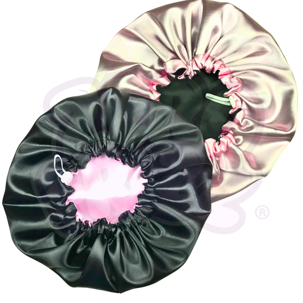 2 Toucas de Cetim Dupla Face com Regulador + 2 brindes (xuxinhas / scrunchies)