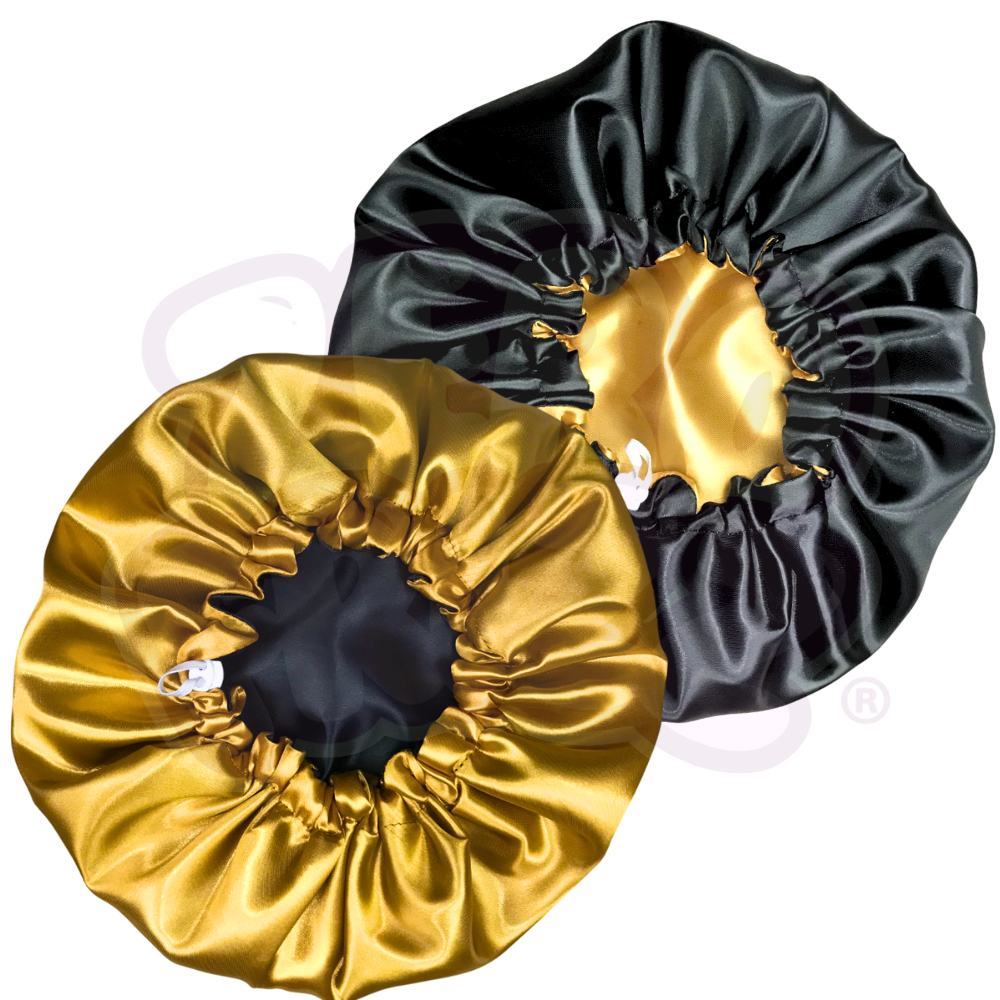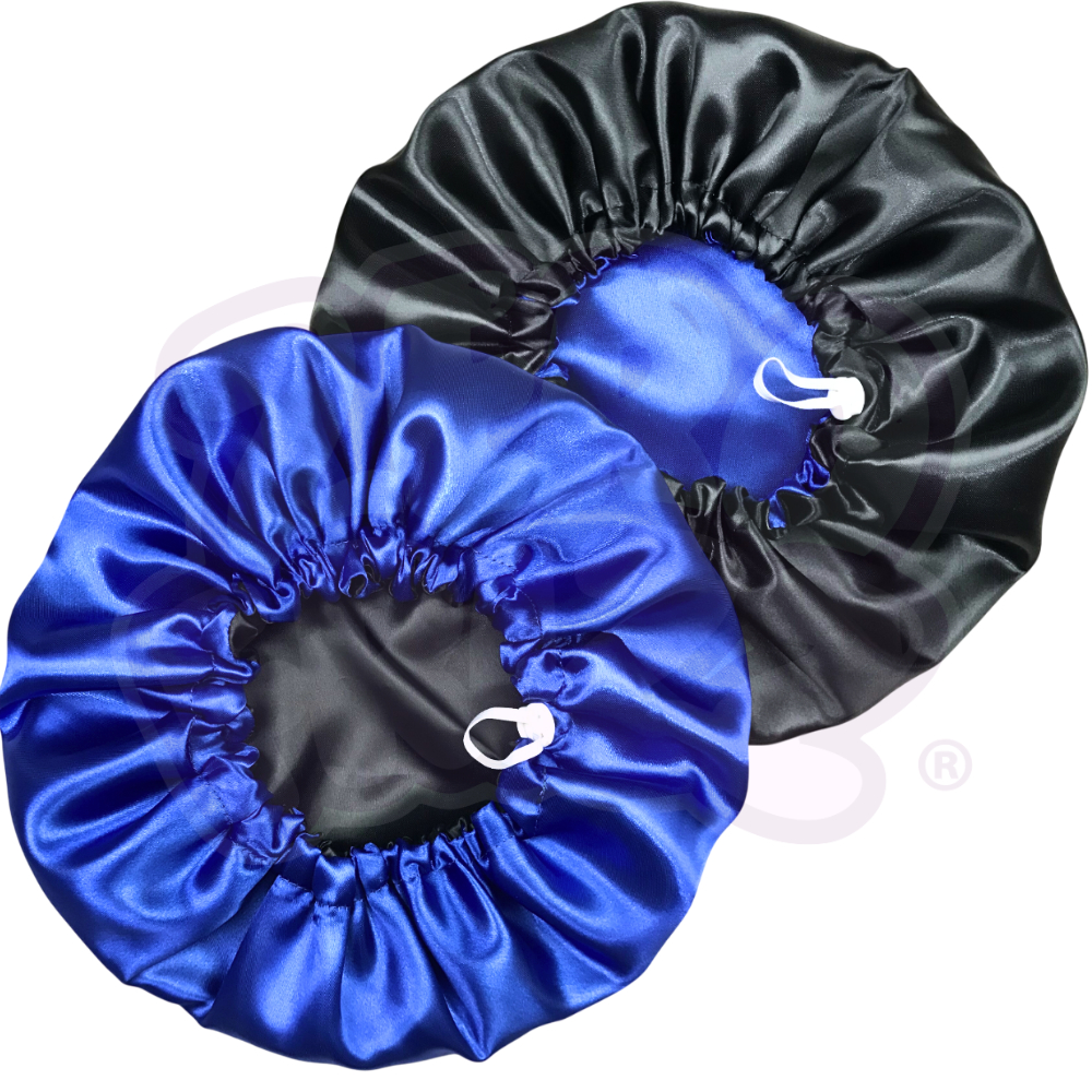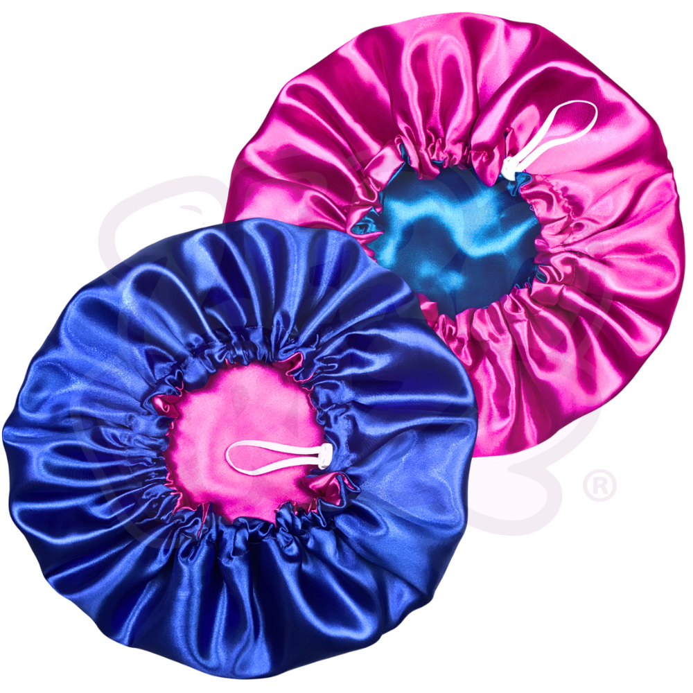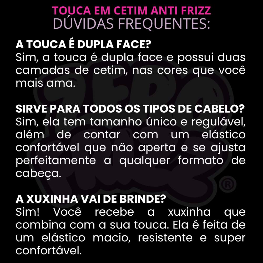 2 Toucas de Cetim Dupla Face com Regulador + 2 brindes (xuxinhas / scrunchies)