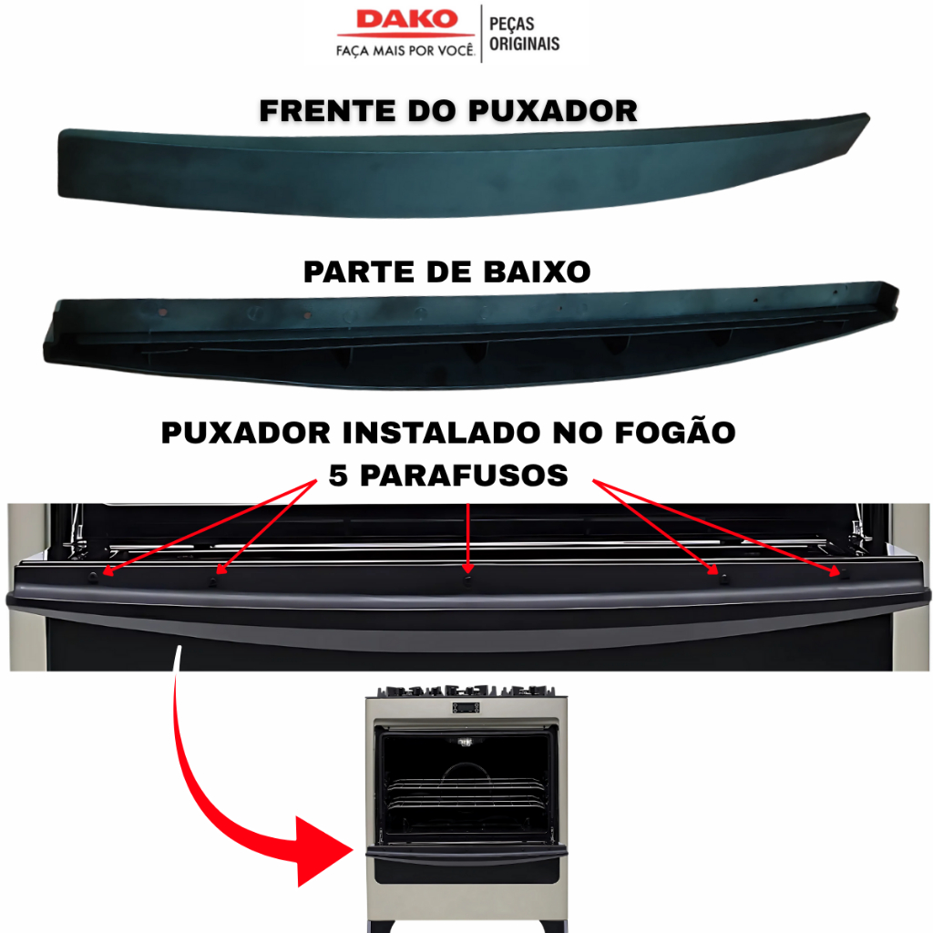 PUXADOR PORTA FOGÃO DAKO SUPREME TITANIUM GLASS 100% ORIGINAL 5 BOCAS