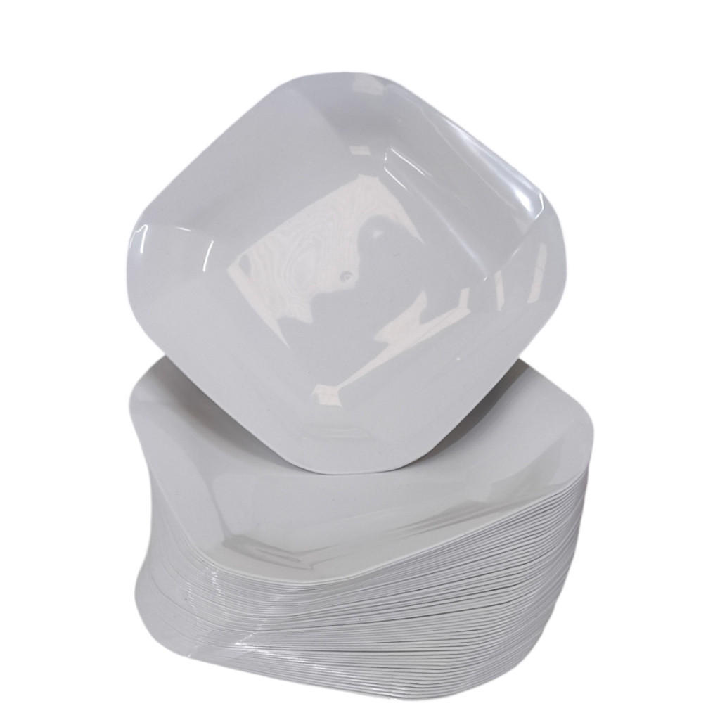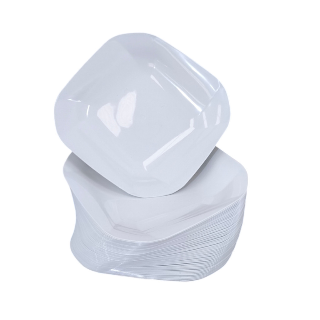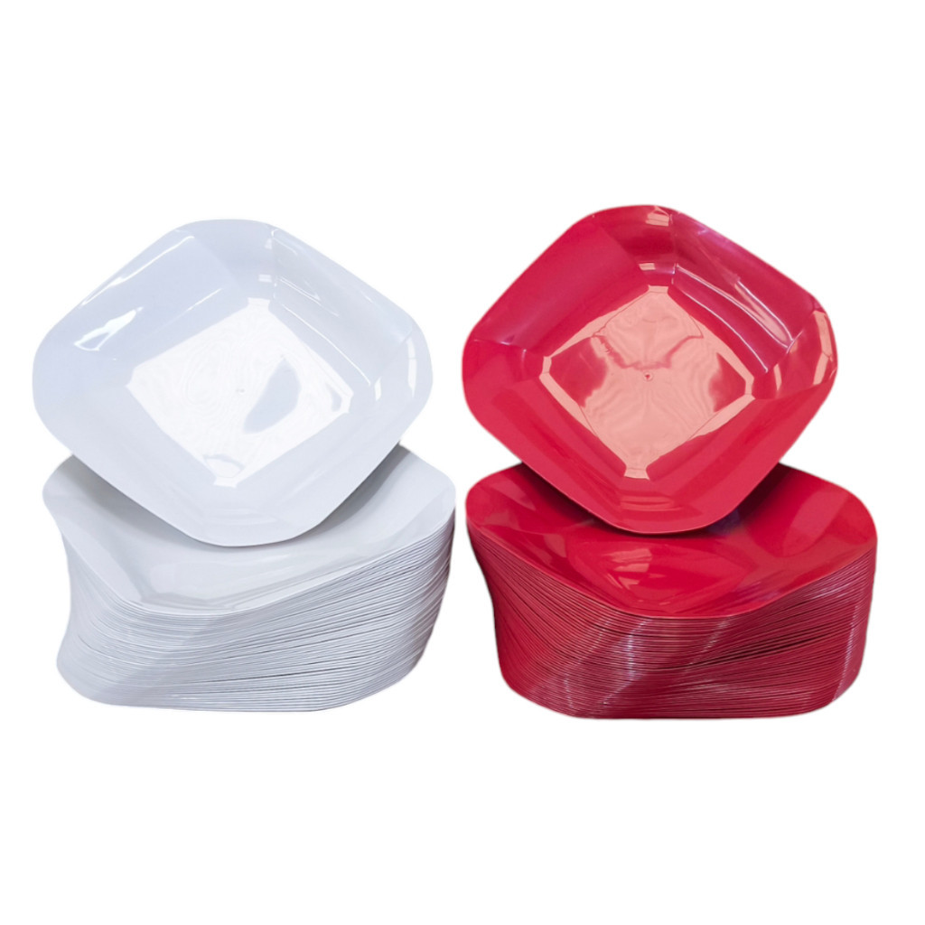 Kit 100 A 200 Pratos Liso Quadrado de Plástico Resistente Durável com Detalhes em Espiral
