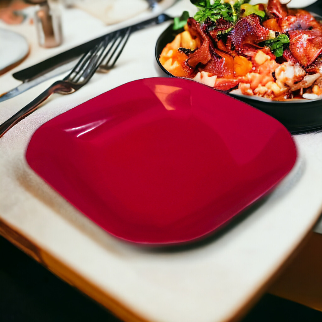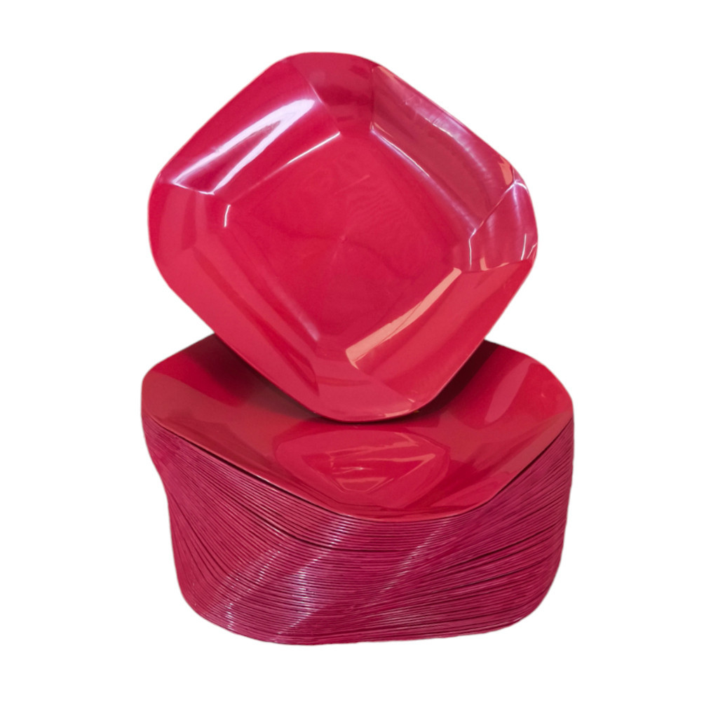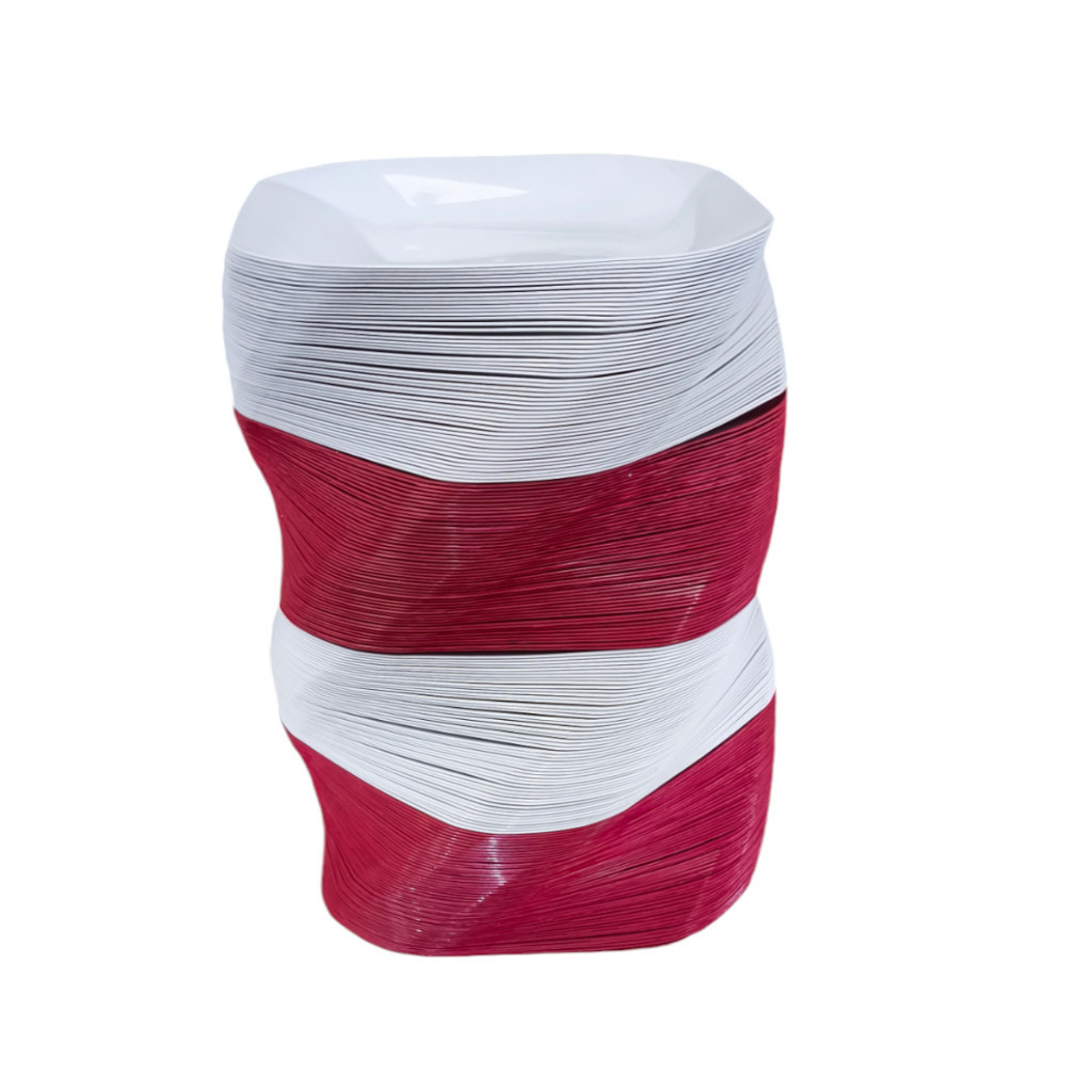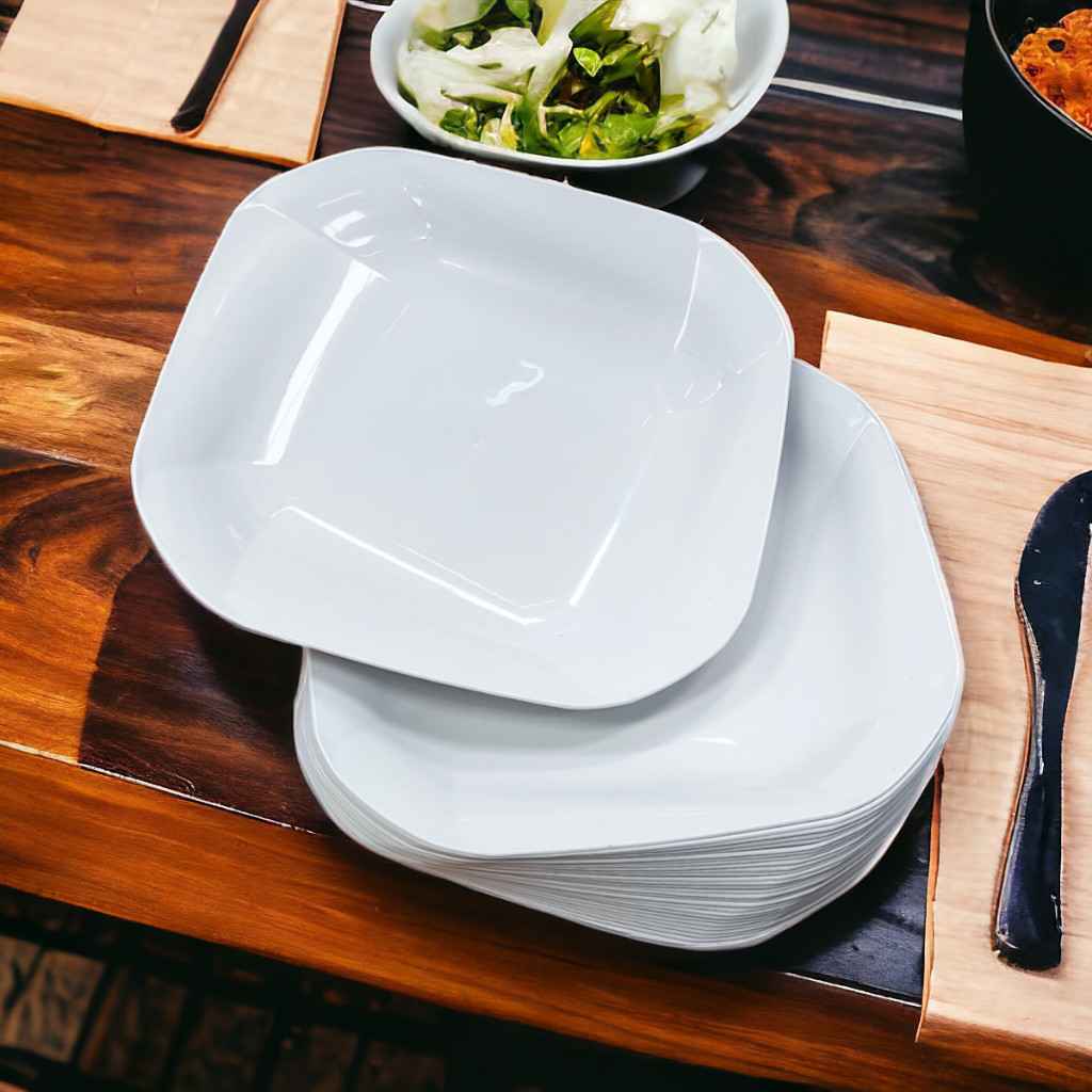 Kit 100 A 200 Pratos Liso Quadrado de Plástico Resistente Durável com Detalhes em Espiral