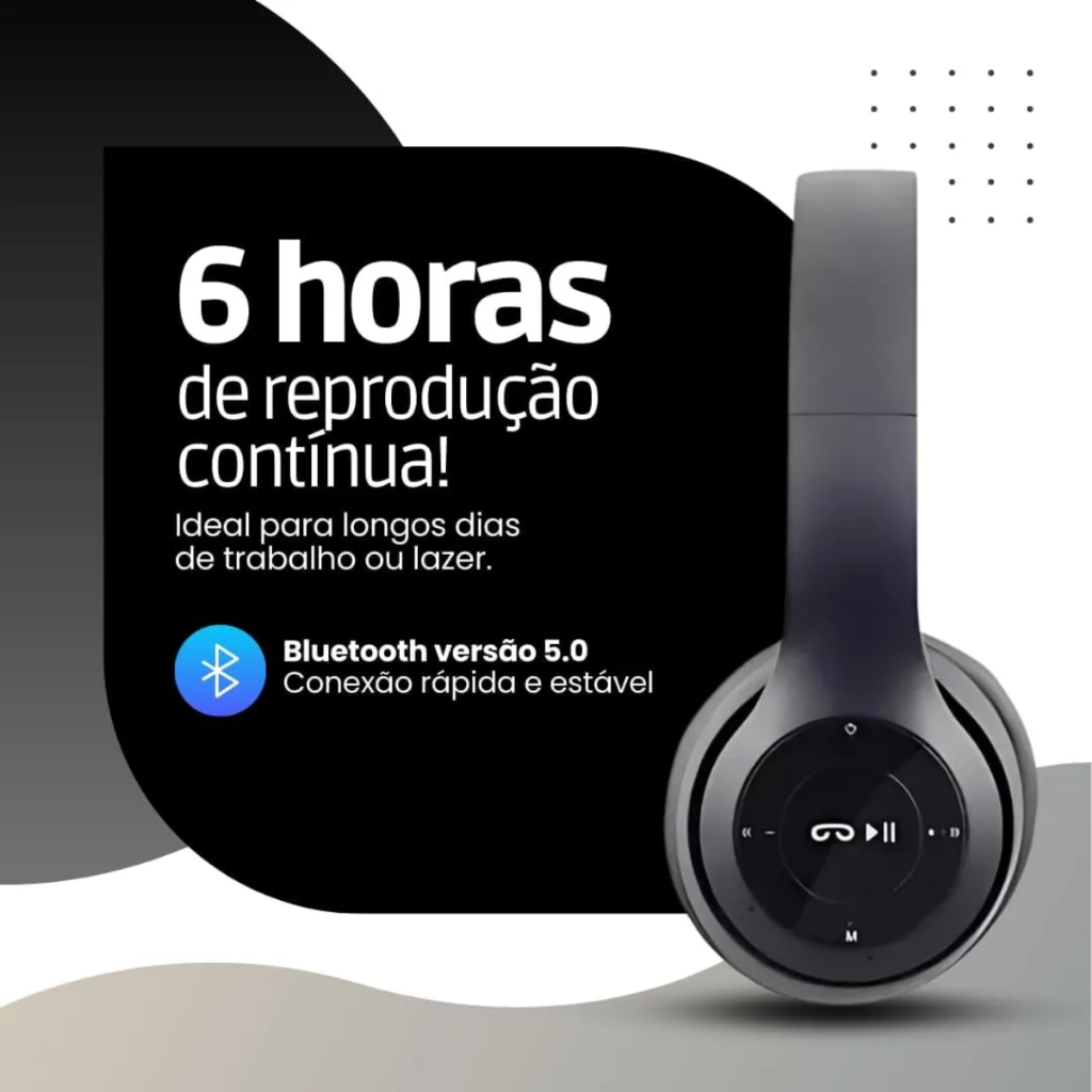 Fone de Ouvido Bluetooth Sem Fio Graves Potentes e Microfone Confortável Para Academia Caminhada