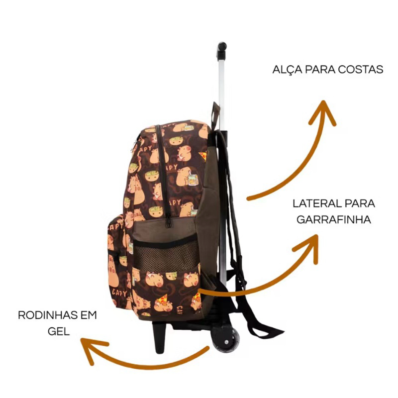 Mochila Escolar Capivara Marrom Rodinha tamanho grande Envio hoje
