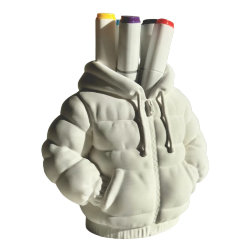 Porta Canetas Blusa Puffer 3D e Organizador Mesa Escritório Decoração Criativa