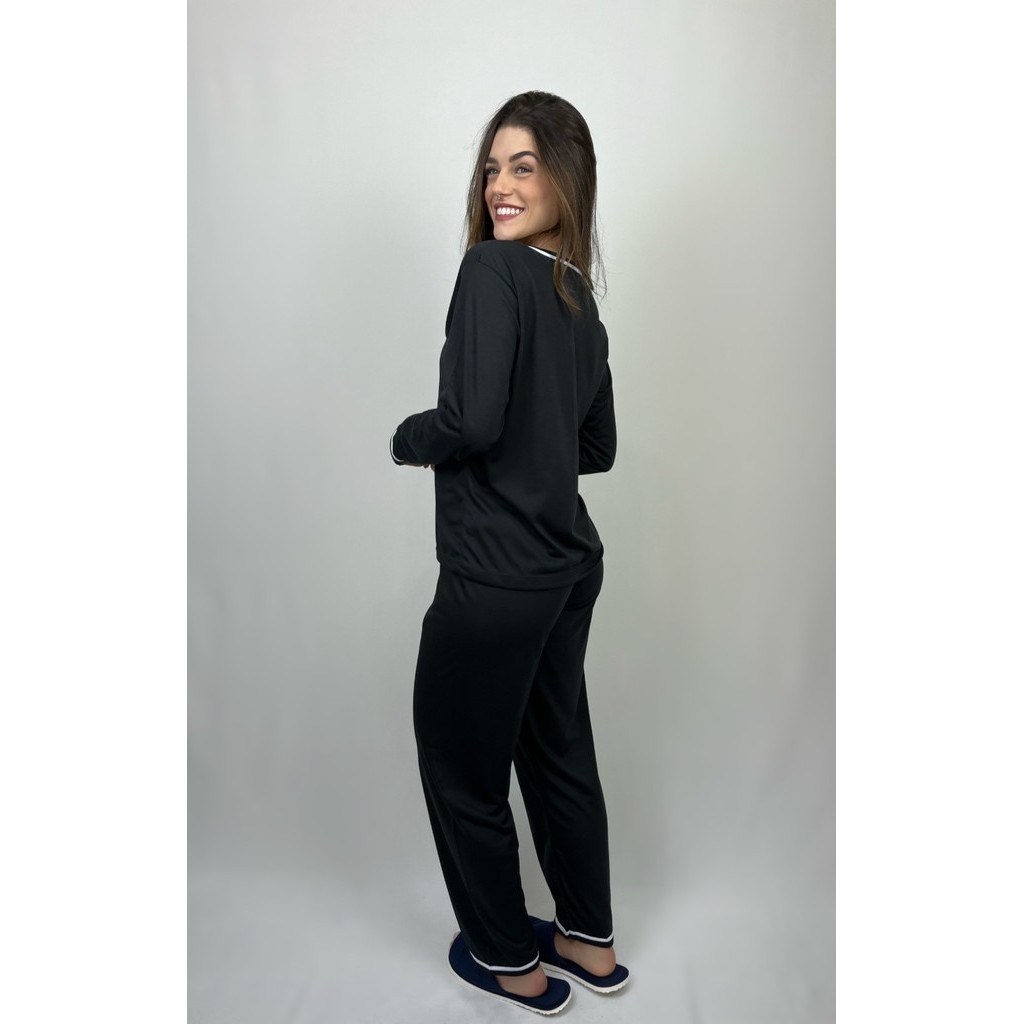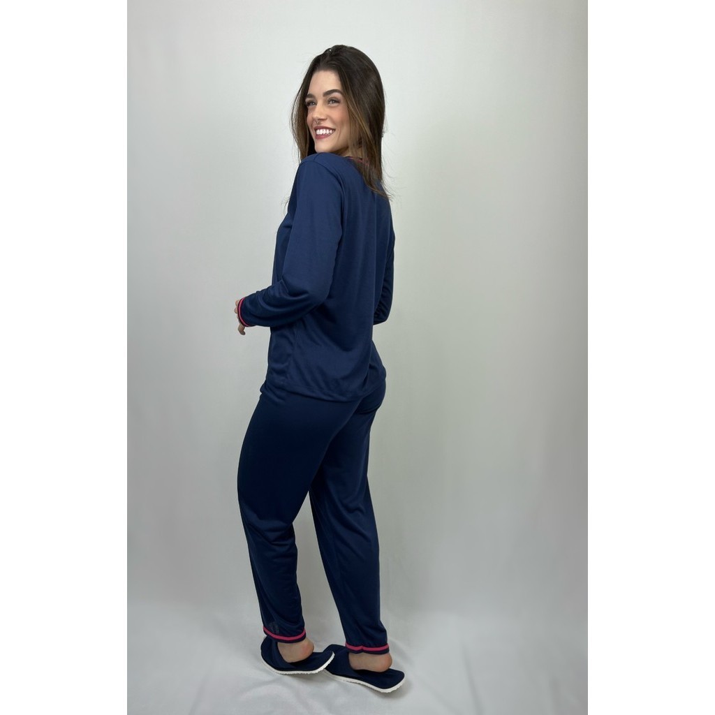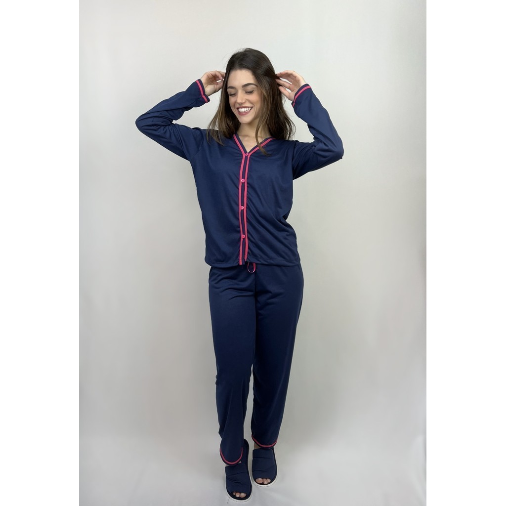Pijama De Inverno Botão Feminino Americano Manga Longa Pijama Blogueirinha