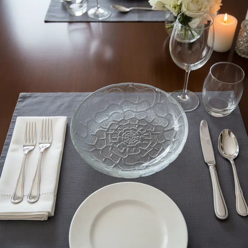 Antigo Prato em Vidro Grosso - lapidado - centro de mesa