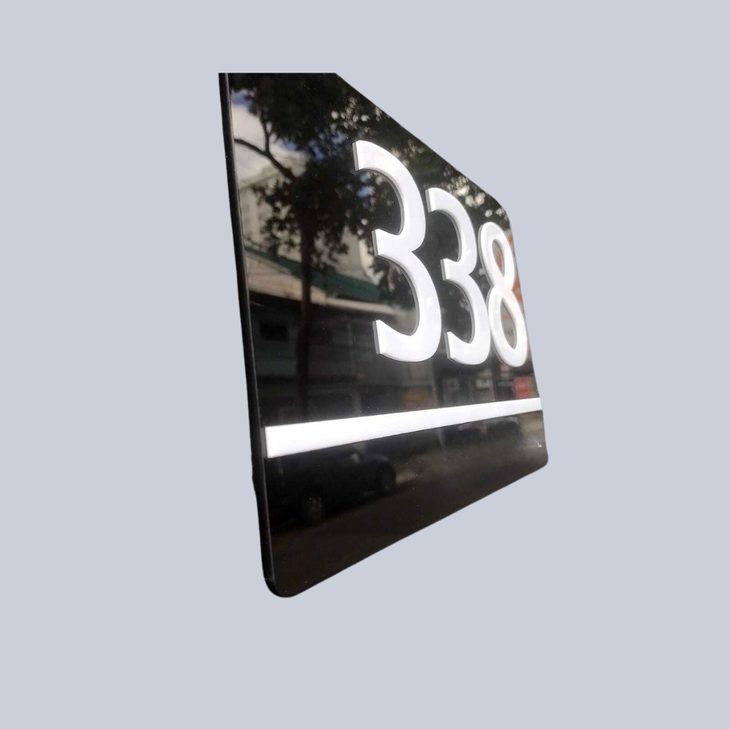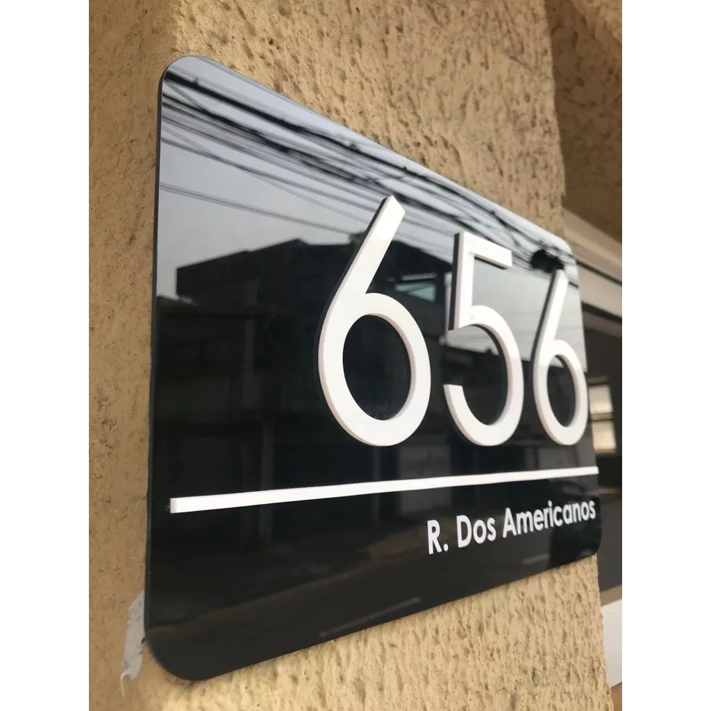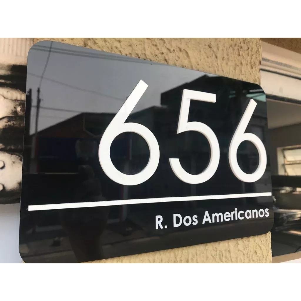 Placa Número Para Casas e Lojas Personalizada Em Acrílico Preto e Branco Resistente 30x20cm