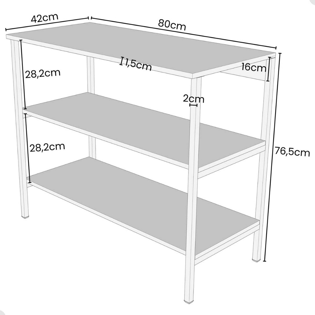 Aparador 3 prateleiras industrial aço decoração sala cantinho do café cozinha multiuso buffet