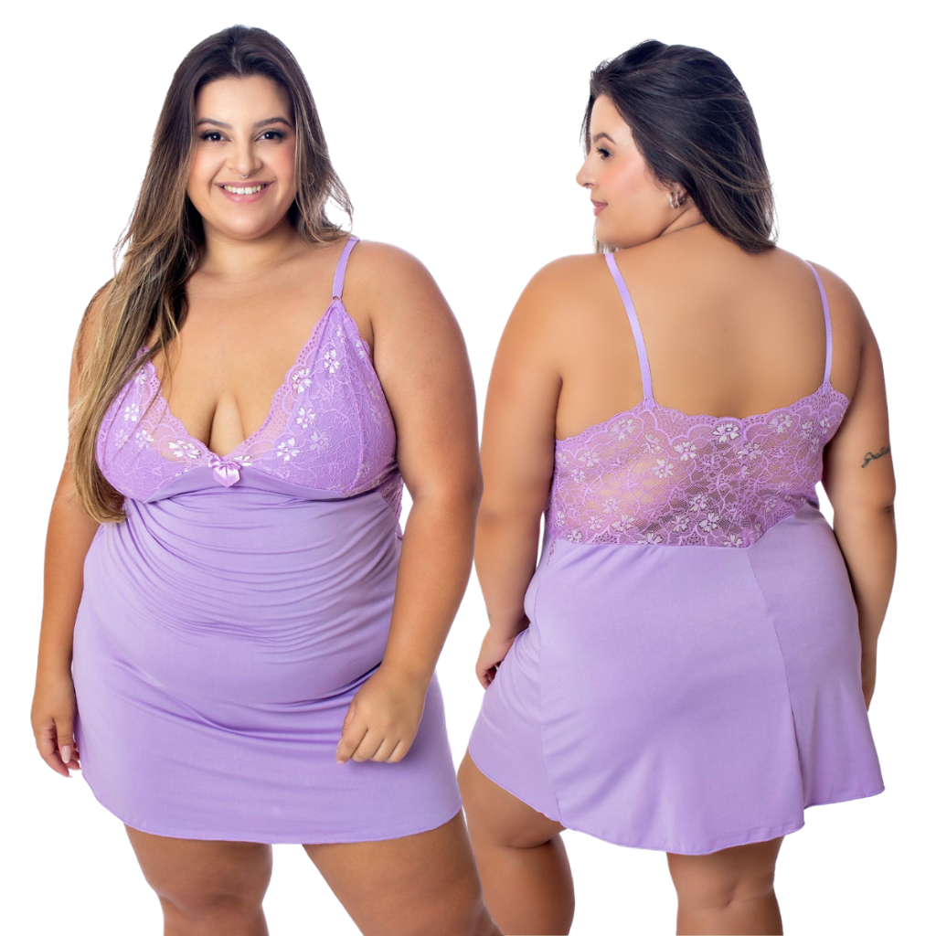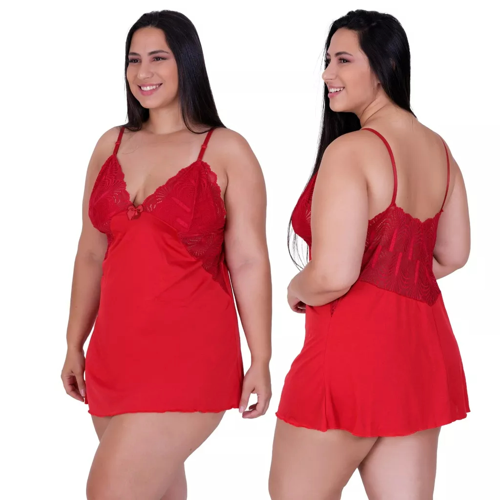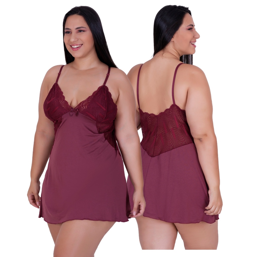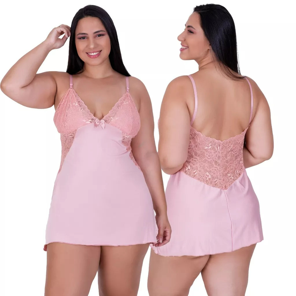 Camisola Plus Size Pijama Sexy Feminino Com Renda 50 ao 54