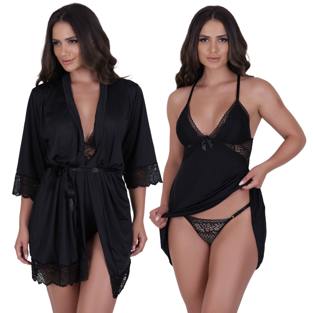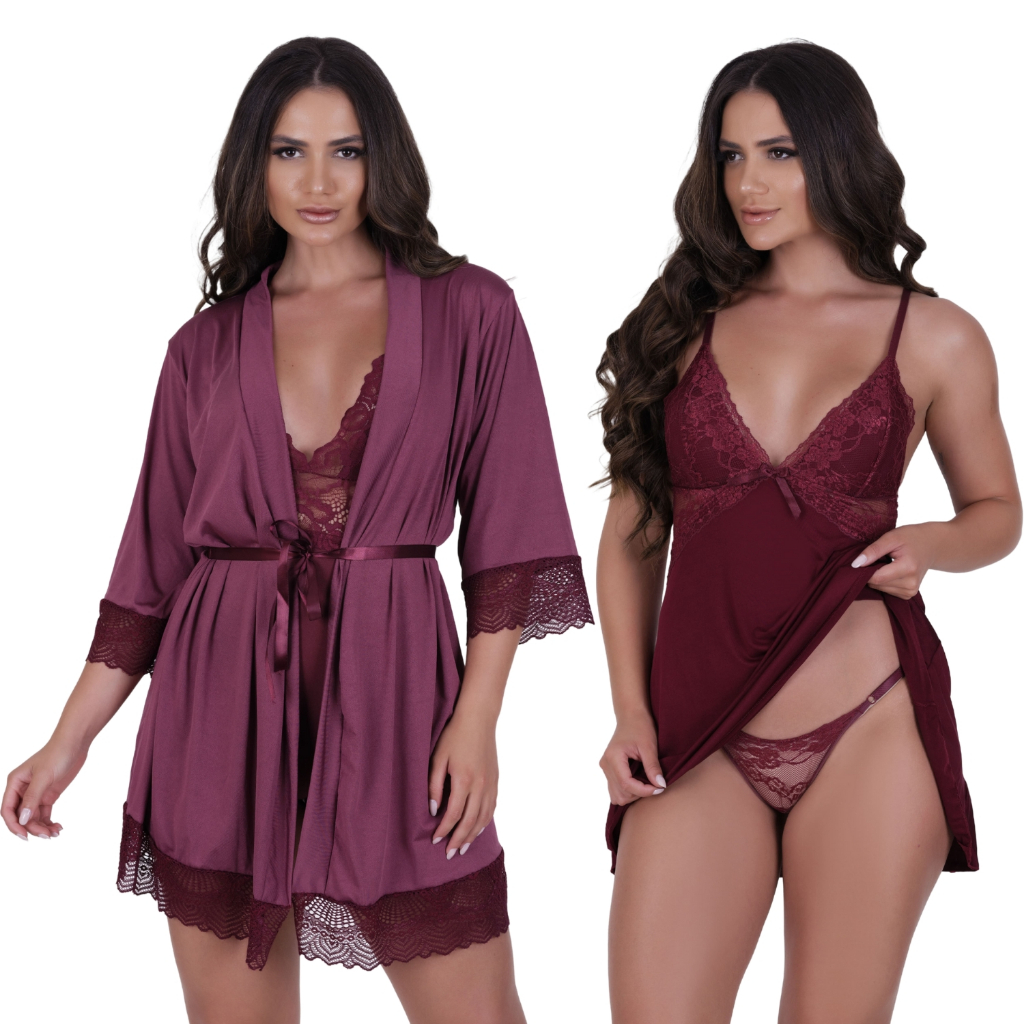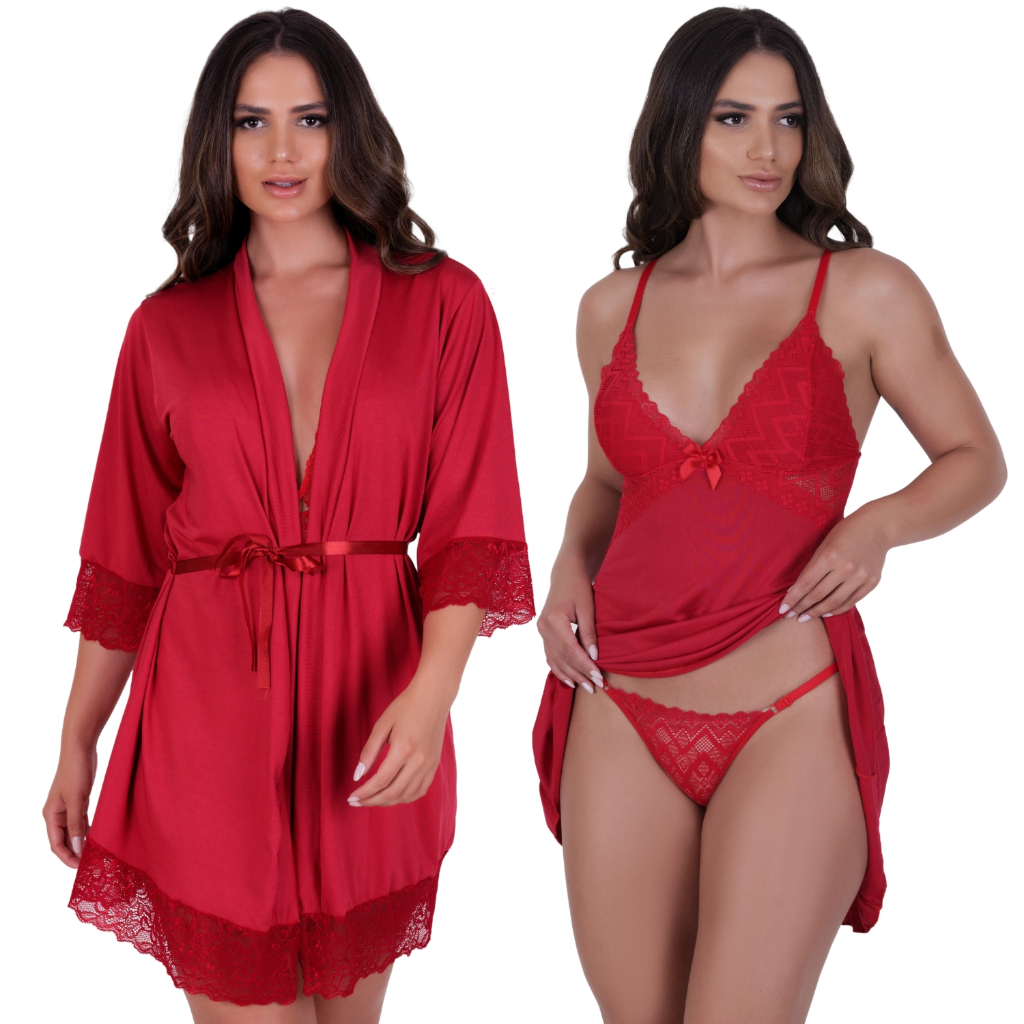 Kit Robe Com Camisola Sensual e Calcinha Luxo Pijama Roupão