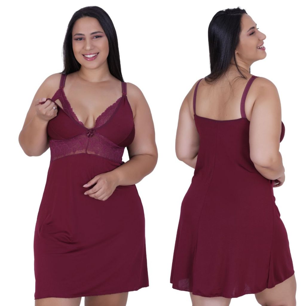 Camisola Amamentação Plus Size Pijama Gestante Maternidade pós parto abre fácil
