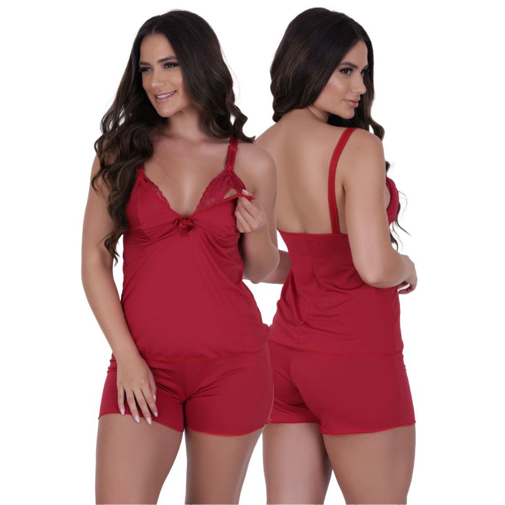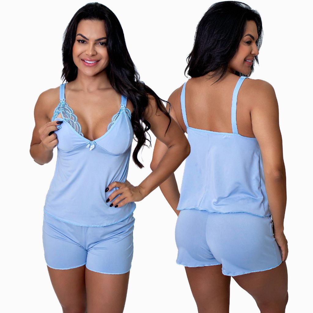 Baby Doll Amamentação Pijama Gestante Maternidade pós parto abre fácil