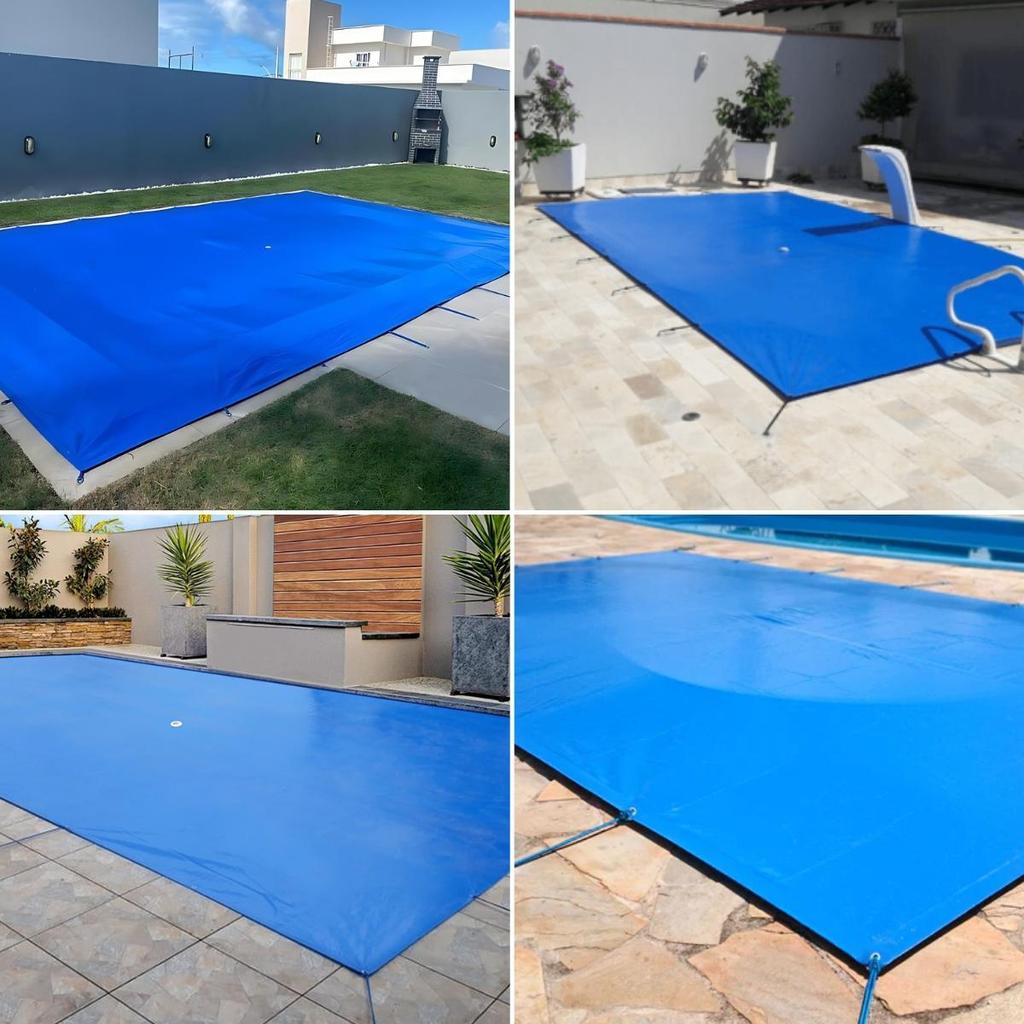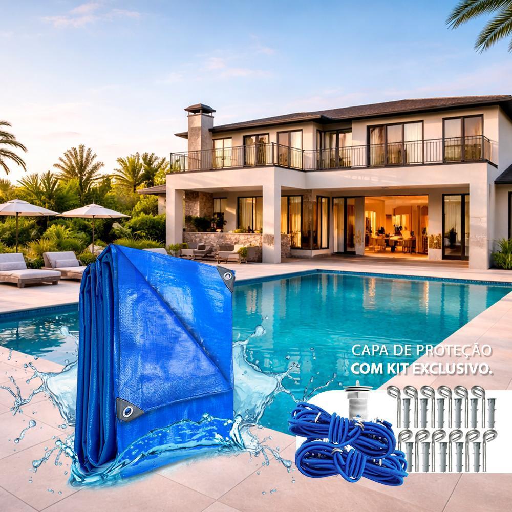 Capa Piscina Azul 5,5x2,5 Metros Econômica Proteção Contra Folhagens Com Kit Instalação