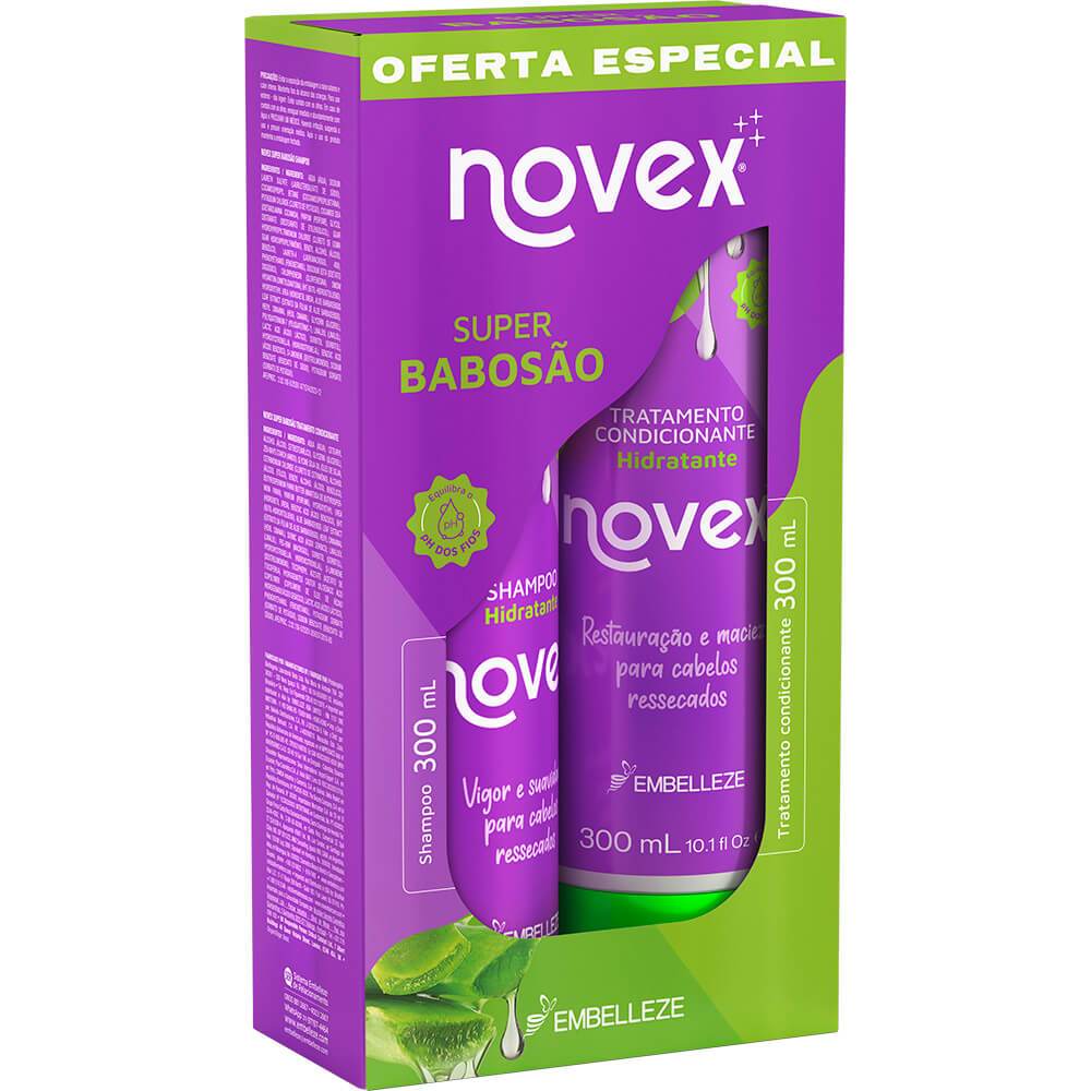 Kit Shampoo e Condicionador Creme De Tratamento Novex e Refil Super Babosão