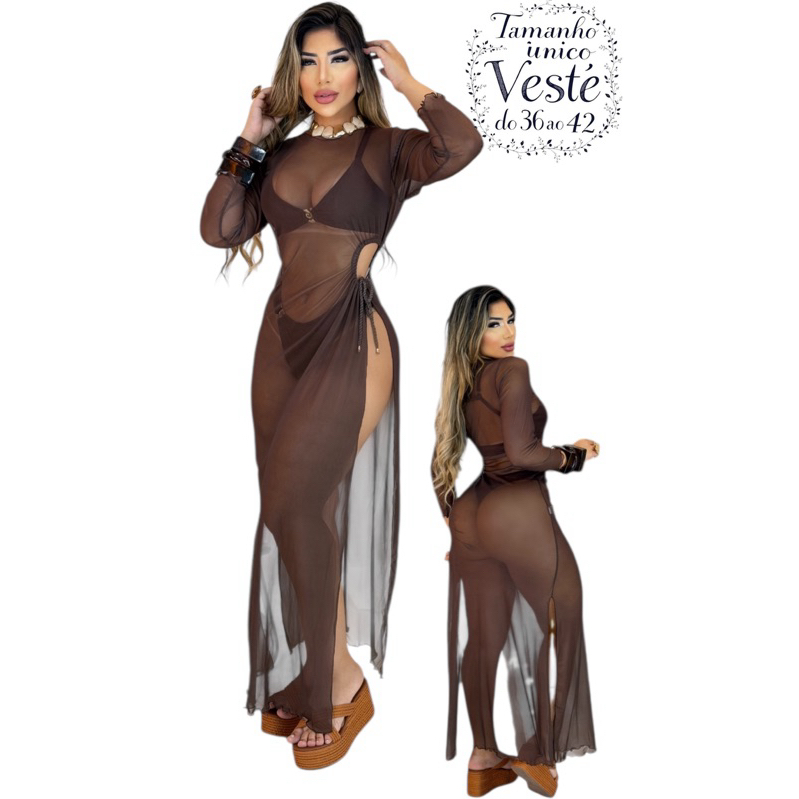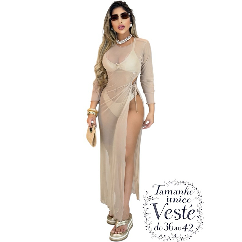 saída de praia luxo vestido longo tule com elastano tamanho único veste do 36 ao 40 ref 2397
