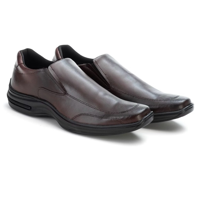Sapato Social Masculino Ortopédico Macio De Couro Legitimo Costurado Moderno Super Leve Com Elástico Ajustável + Relógio