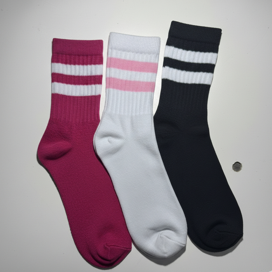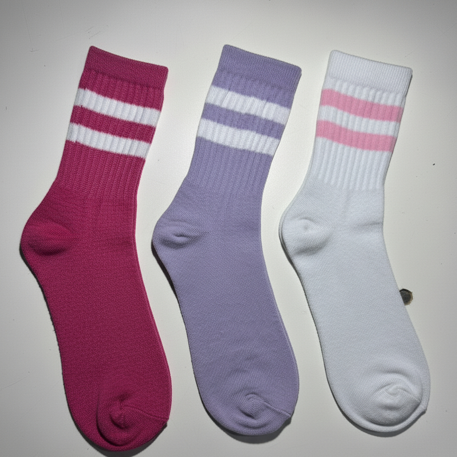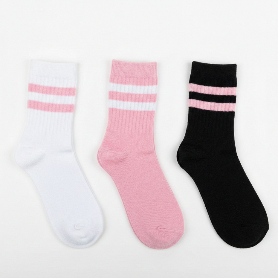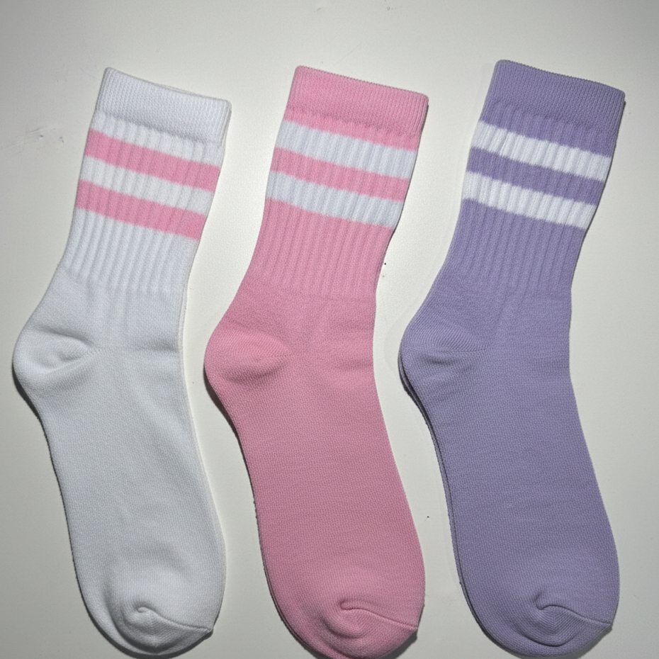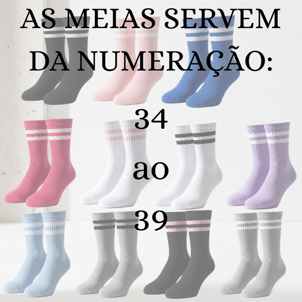 Meia Feminina Cano Alto em Algodão Kit com 12 Pares de Meias Listradas - Promoção !