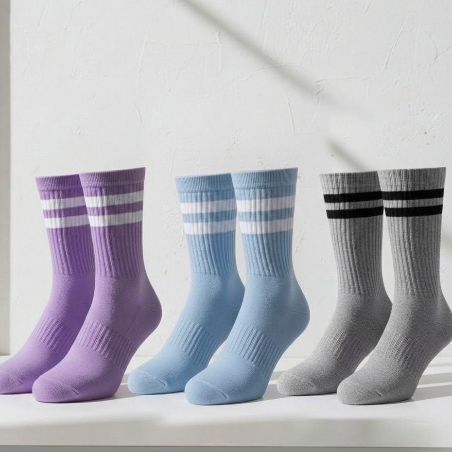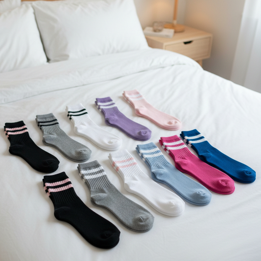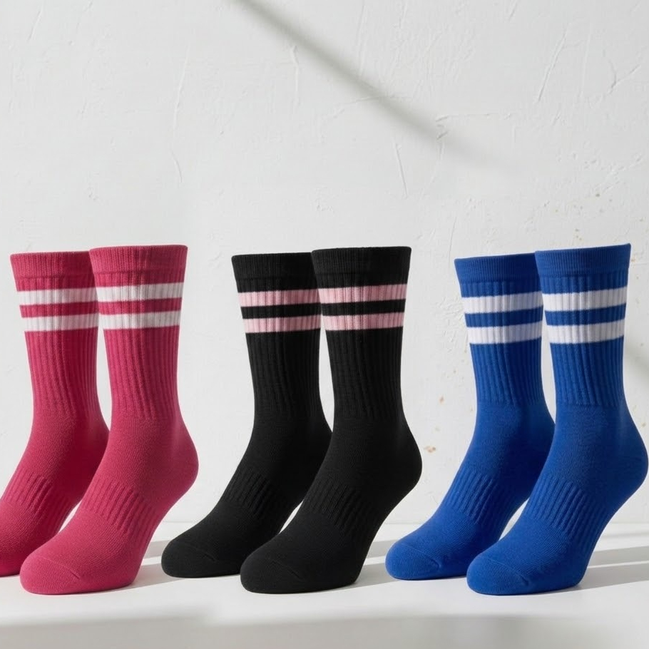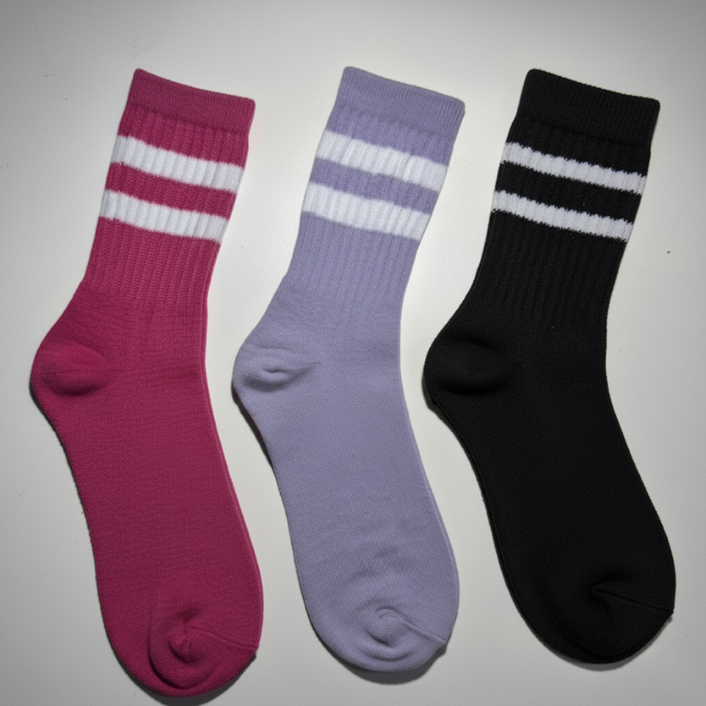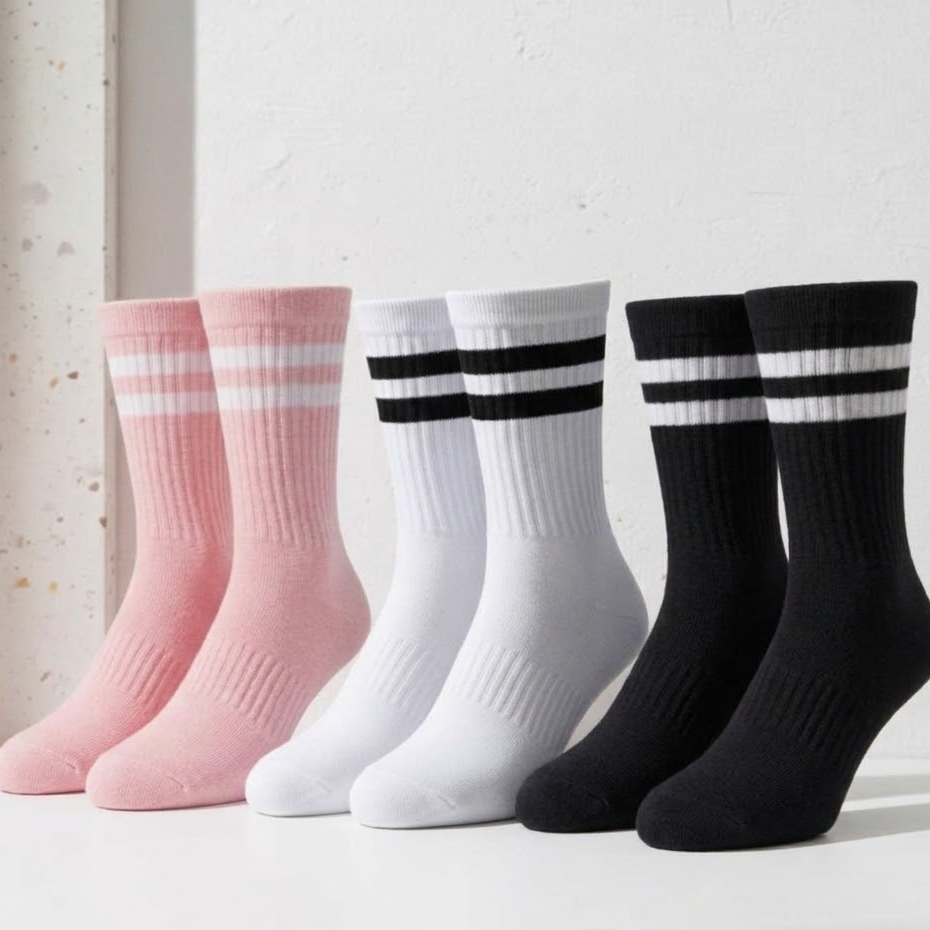 Meia Feminina Cano Alto em Algodão Kit com 12 Pares de Meias Listradas - Promoção !