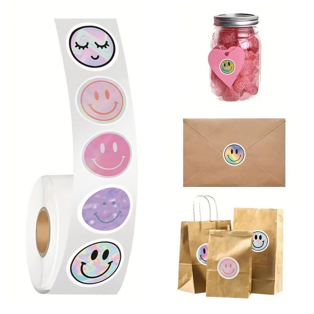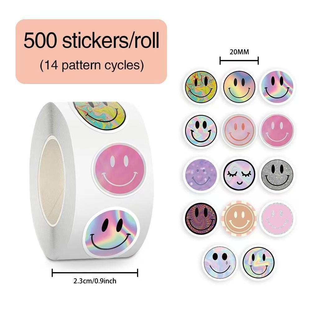 Adesivos De Rolo De Rosto Sorridente (500 Peças) – Adoráveis Tipo Para Notebooks , Laptops E Decoração Diária