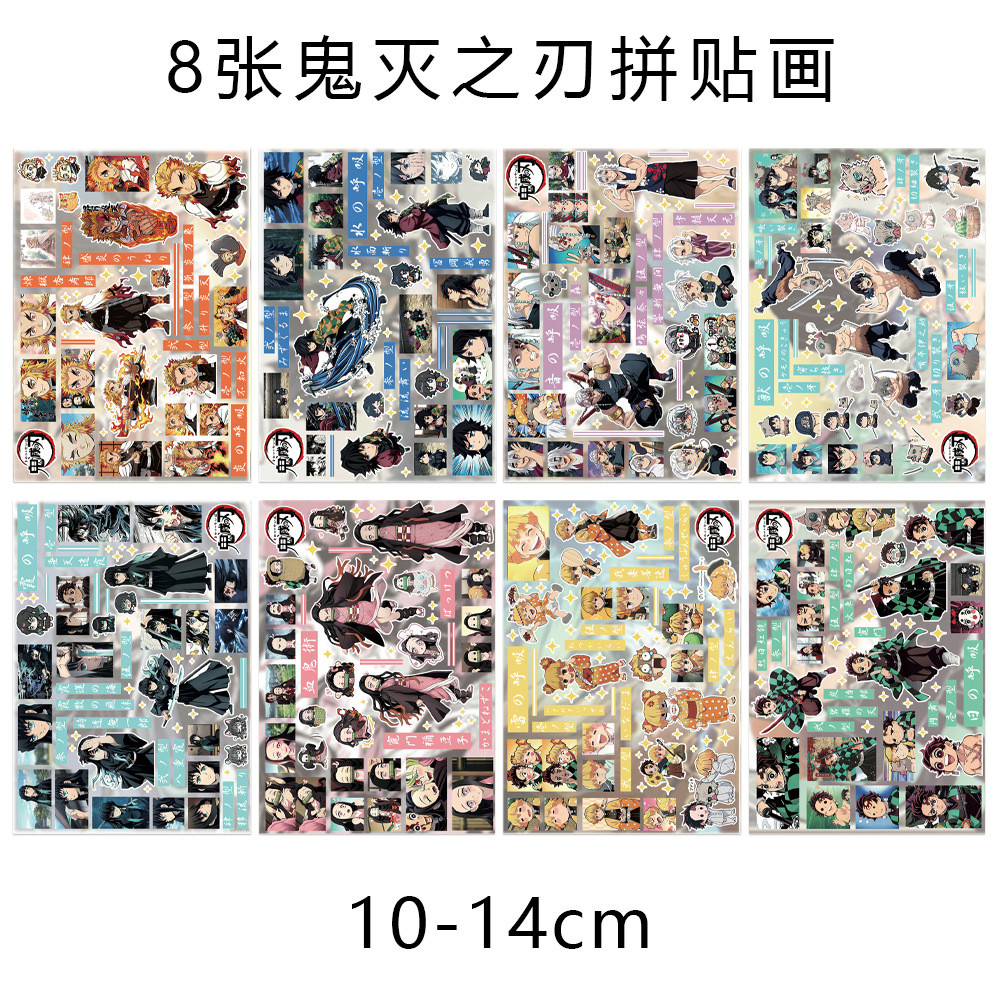Adesivos Recortados De Anime Japonês Demon Slayer (8 Unidades)-Artesanais À Prova D'água Para Decoração De Colagem Estét
