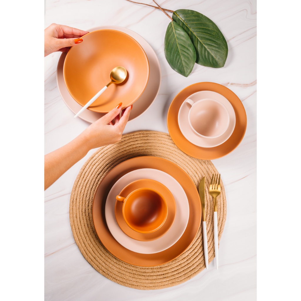 Prato Raso Unni Avelã Marrom Cerâmica 26cm Oxford Porcelana para Jantar Mesa Posta Sofisticado