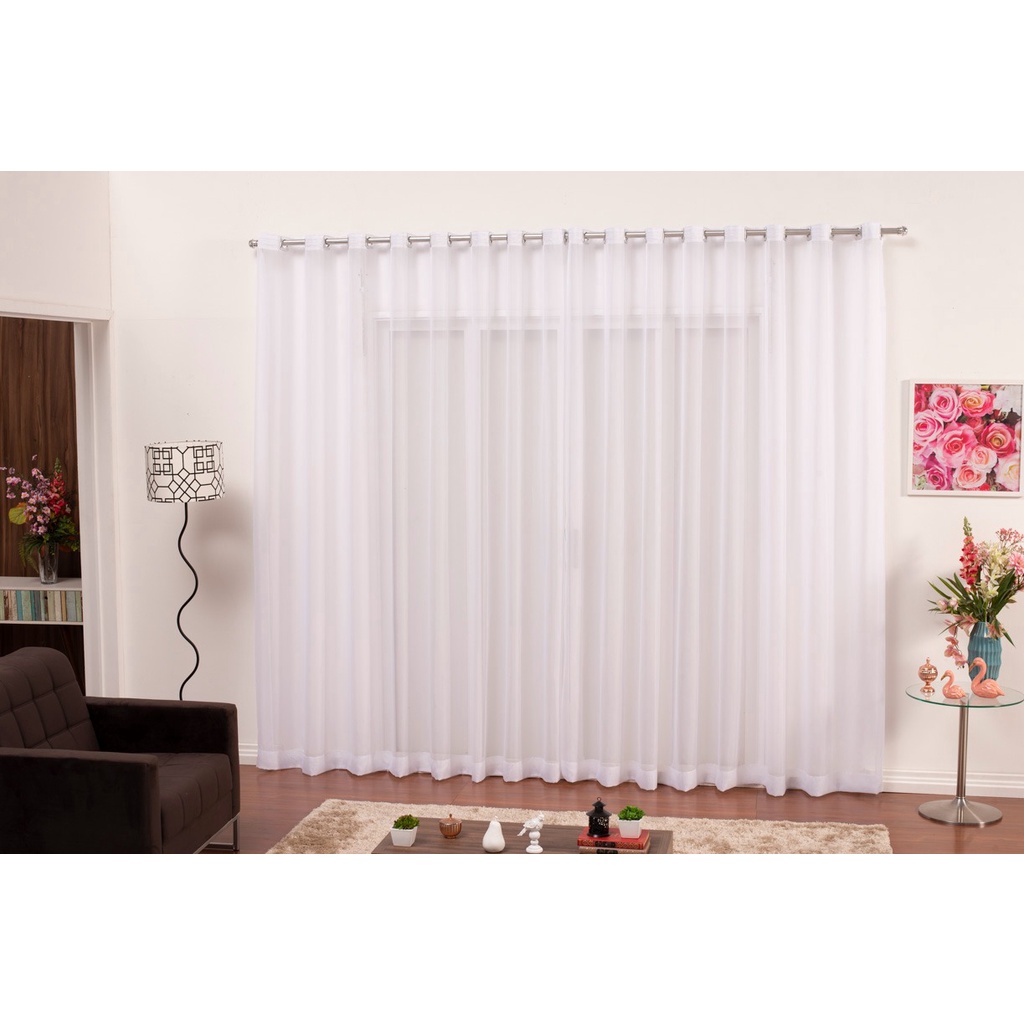 Cortina Delicada para Quarto Sala Voal Voil 3 00 X 170 com Ilhós Cromado