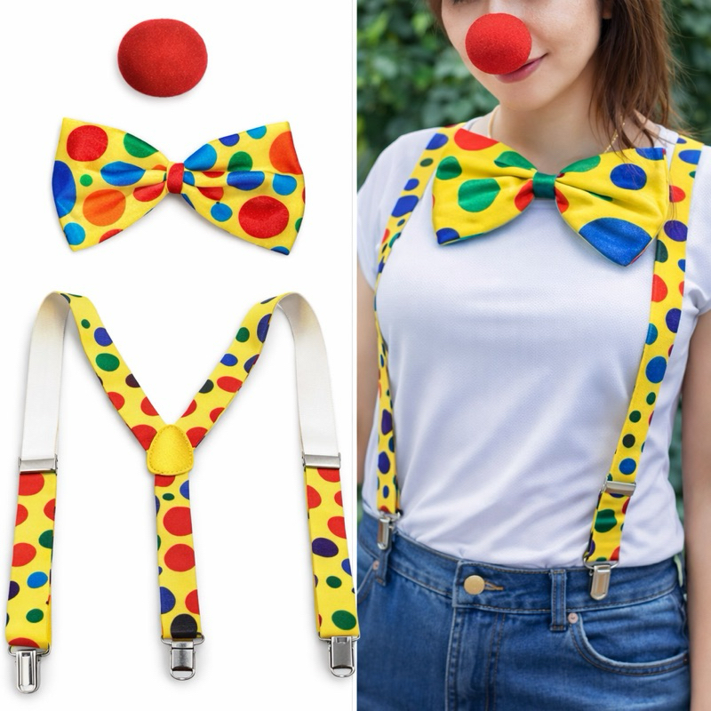 Kit Fantasia Palhaço Suspensório/gravata/nariz