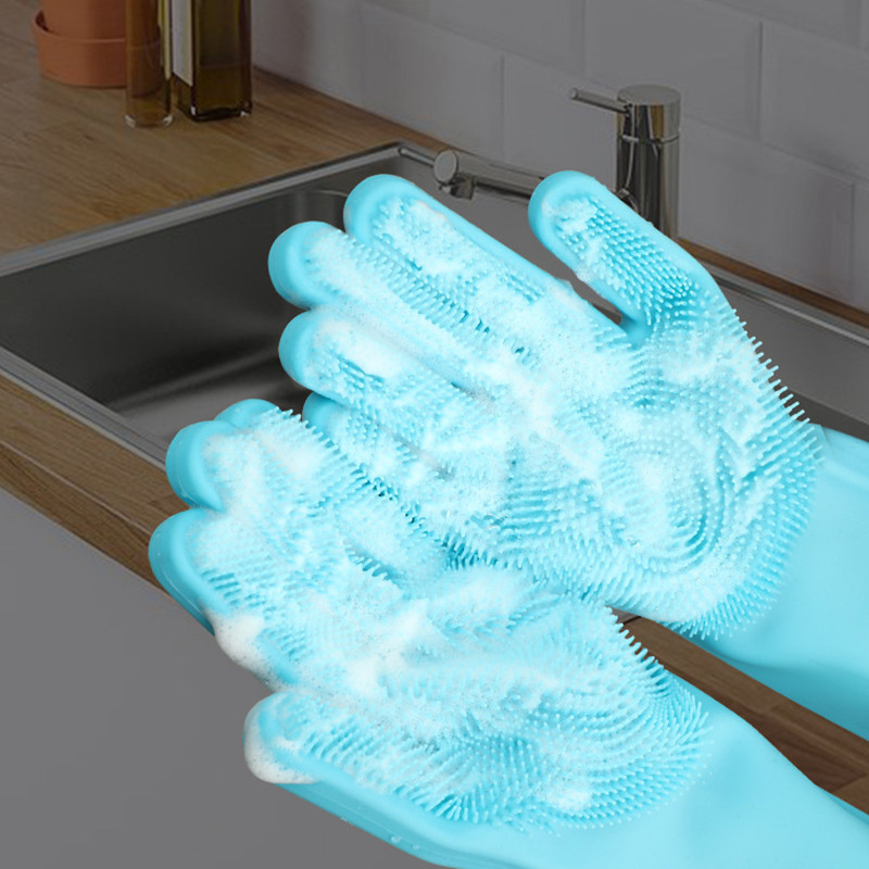 1 Par de luvas de lavagem Luvas de louça reutilizáveis de Silicone esponja cozinha banheiro