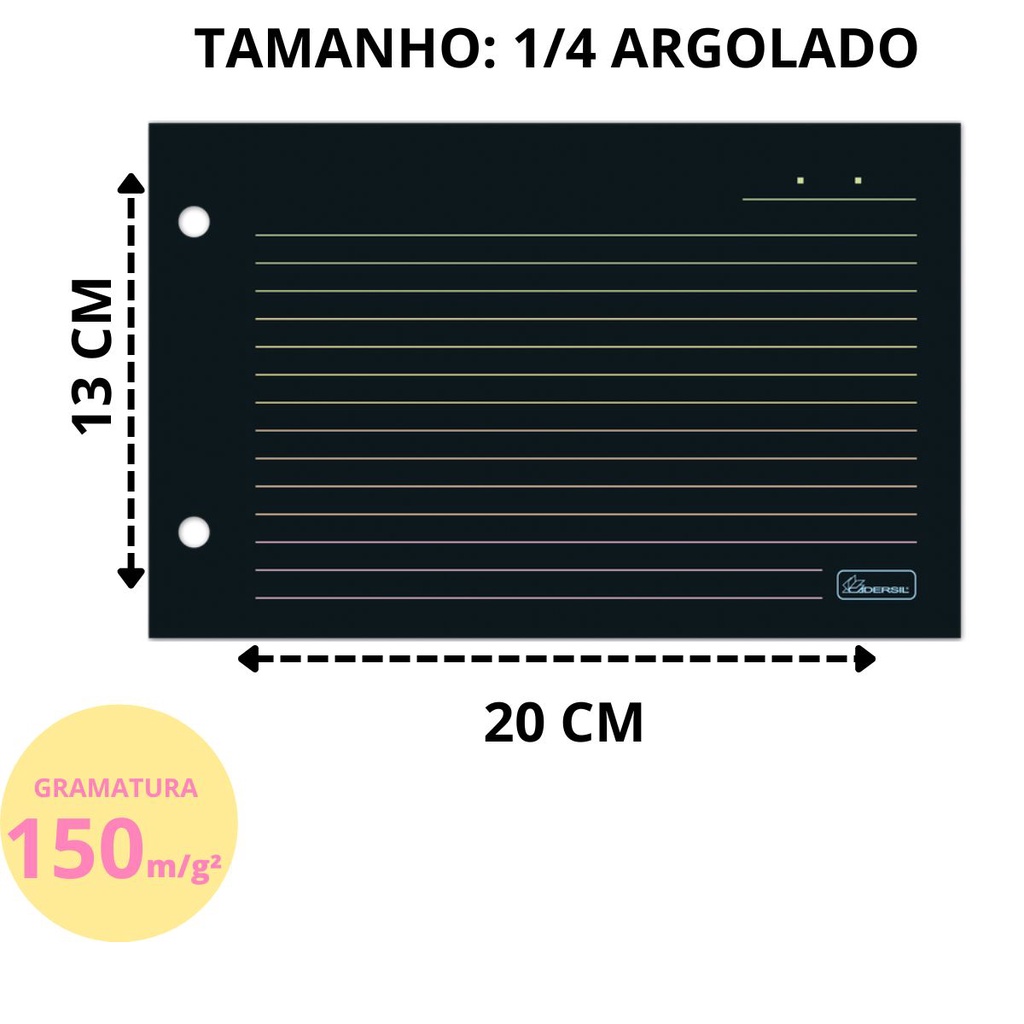 Refil Para Caderno Argolado Mini Com Folhas Pretas E Pautas Coloridas - CADERSIL