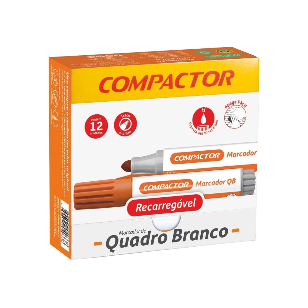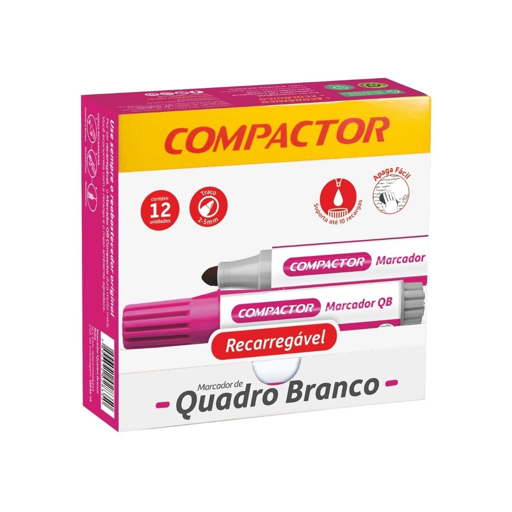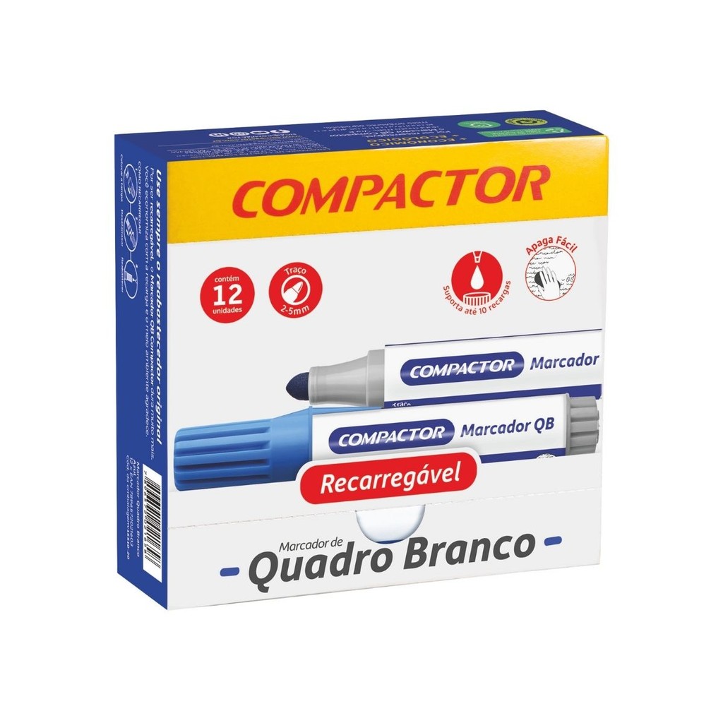 Kit 12 Marcadores Para Quadro Branco Diversas Cores - COMPACTOR
