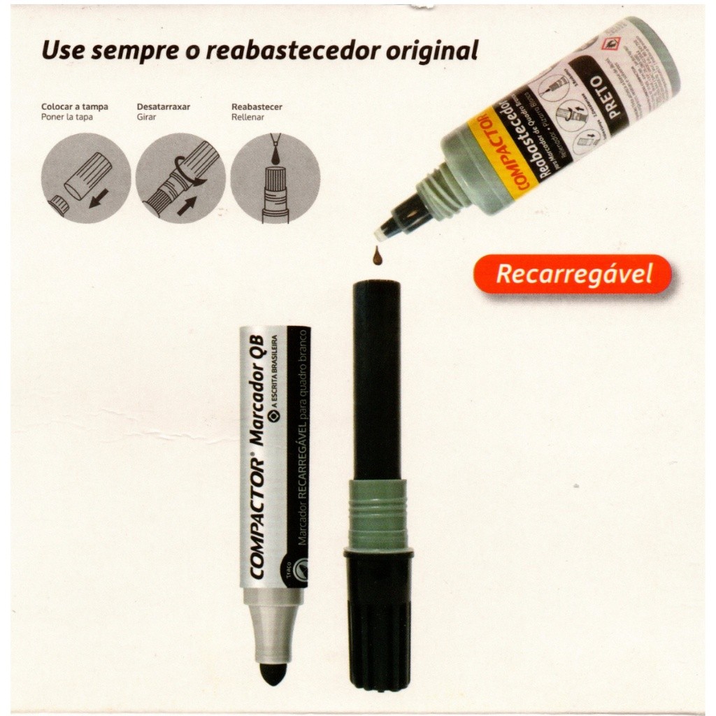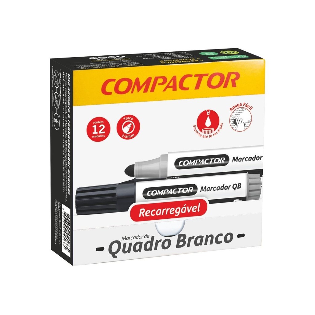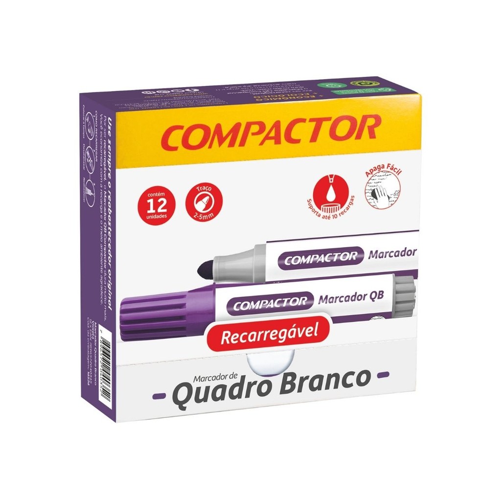 Kit 12 Marcadores Para Quadro Branco Diversas Cores - COMPACTOR
