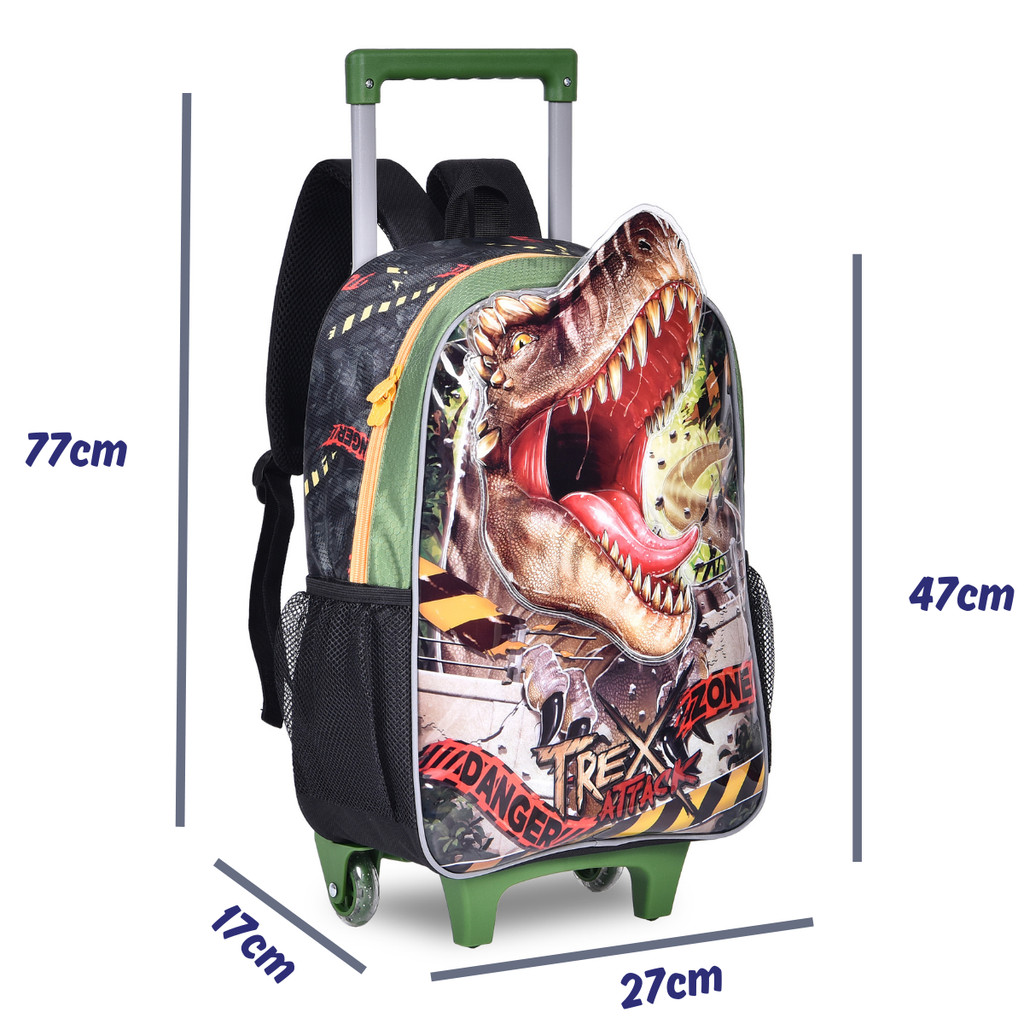 Kit de Mochila de Rodinha Lancheira e Estojo Infantil Masculina Jurassic Park - Clio Style