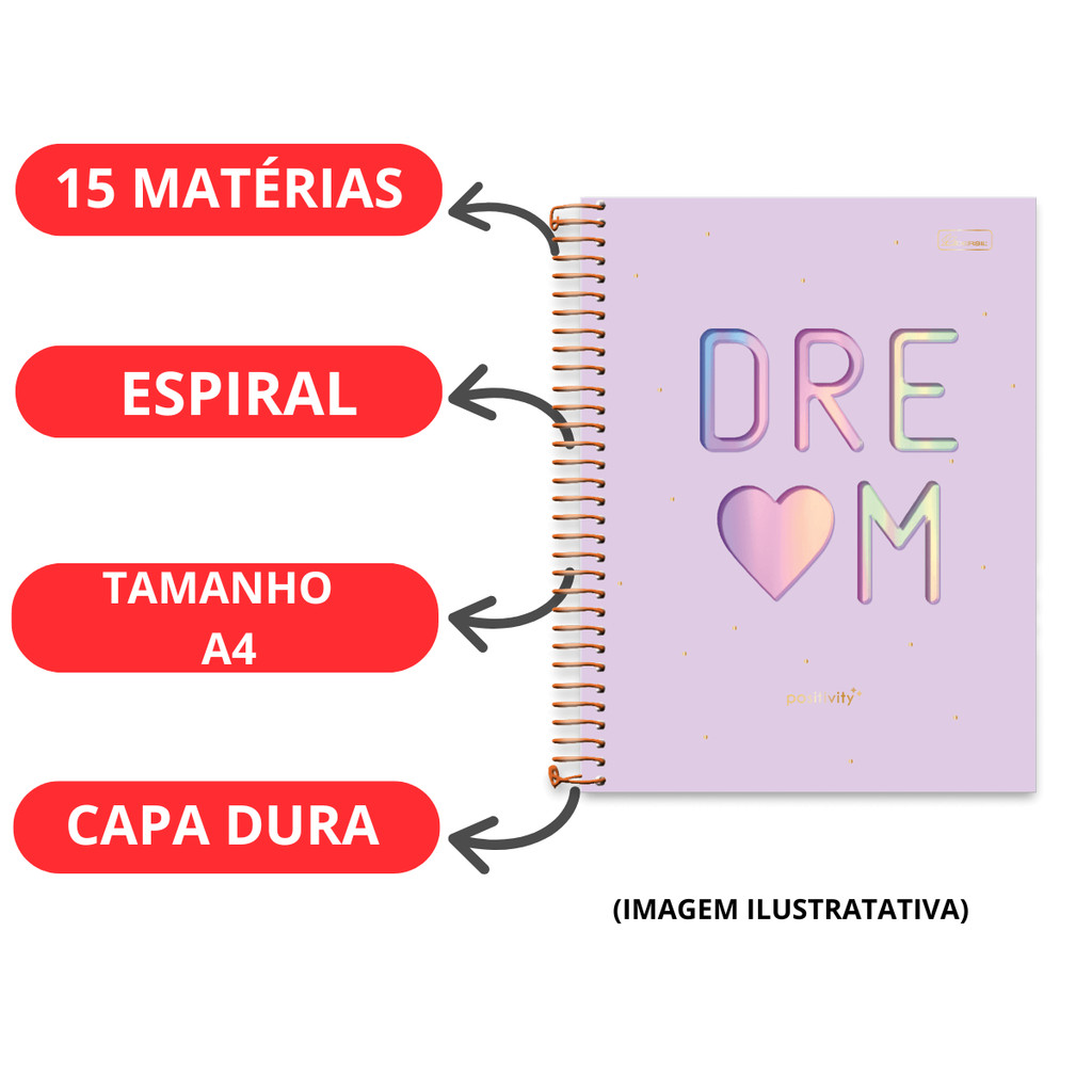 Caderno 15 Matérias Universitario Positivity 240 Folhas - CADERSIL MODELO:DREAM