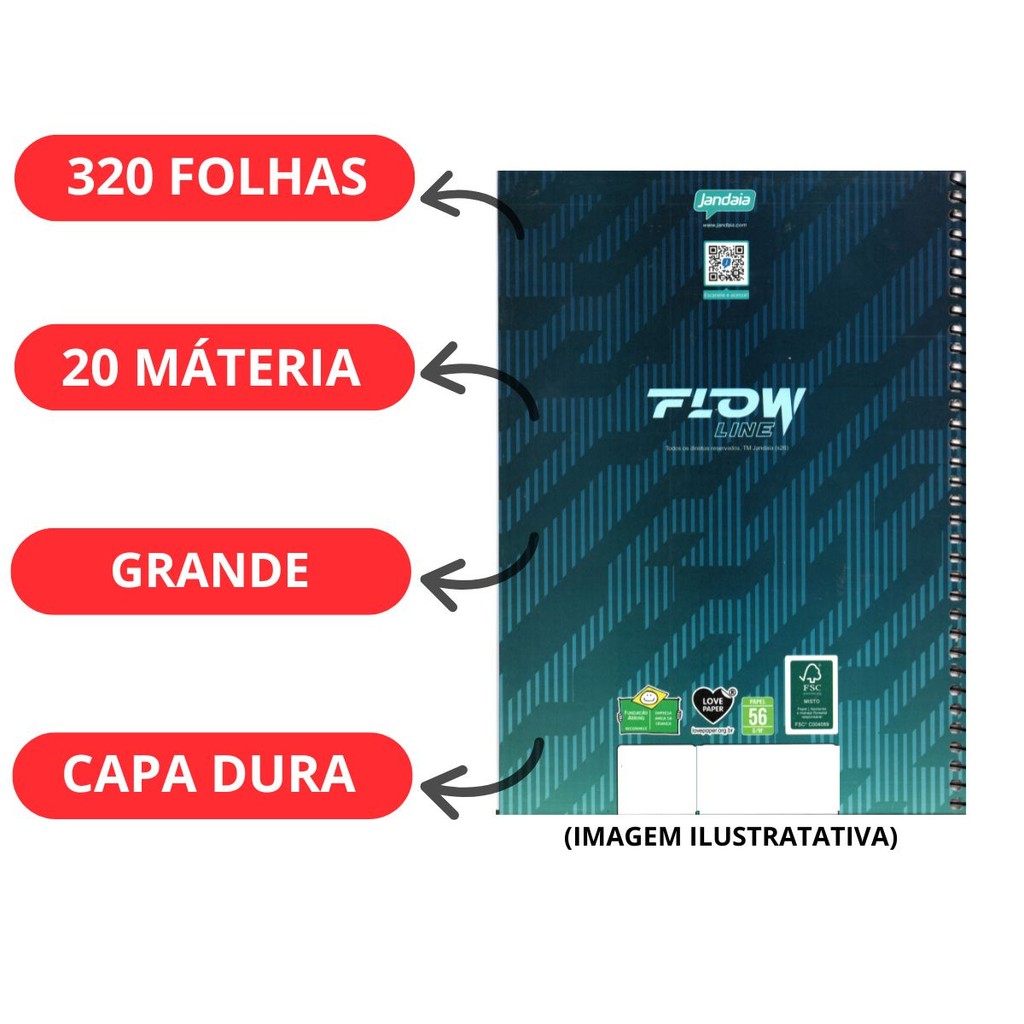 Caderno 20 Matéria Universitario Masculino 320 Folhas Flow - Jandaia
