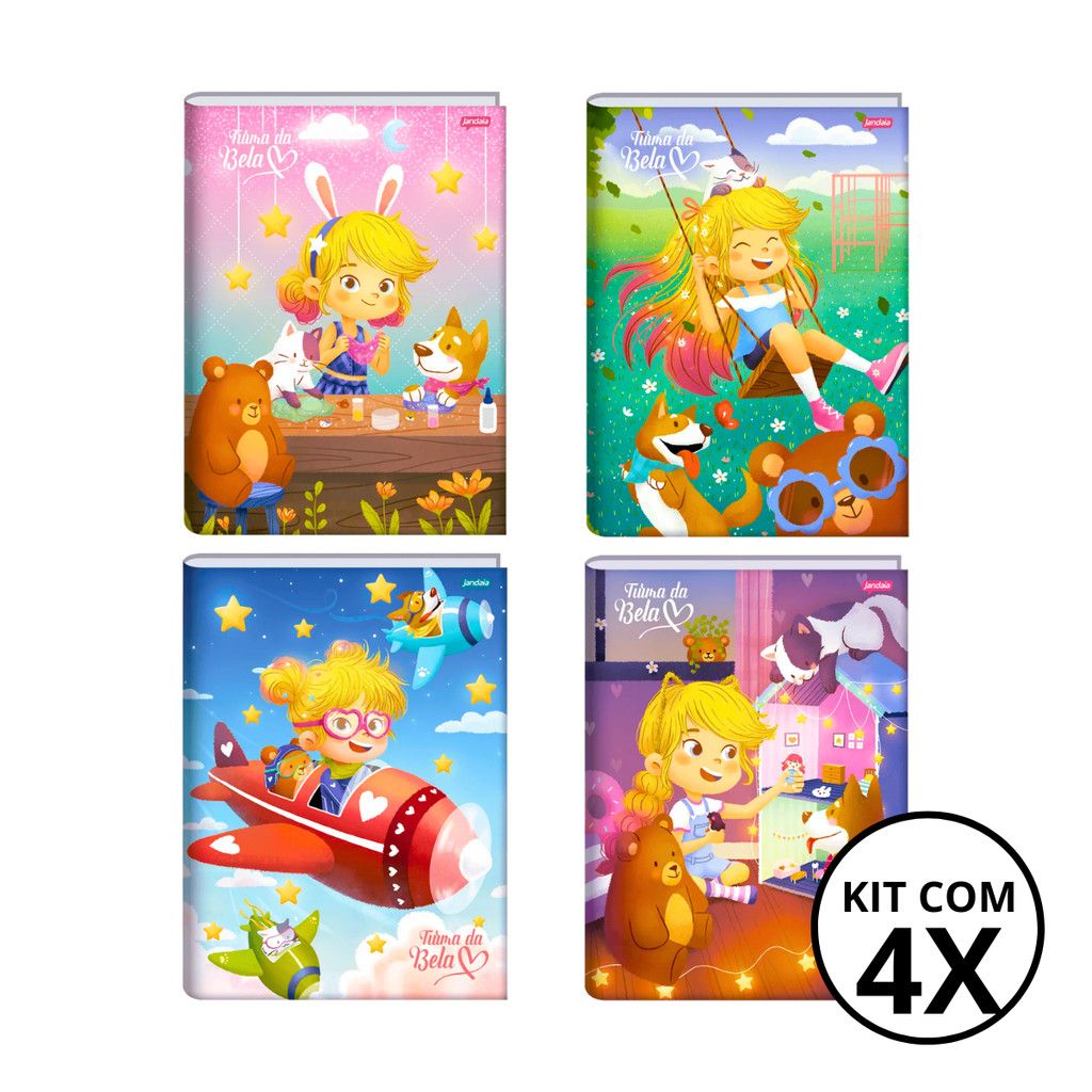 Kit 4 Cadernos Brochura Universitário Turma Da Bela 80 Folhas - Jandaia