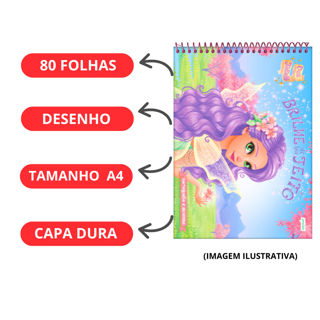 Caderno De Desenho Universitário Conto De Fada 80 Folhas - JANDAIA
