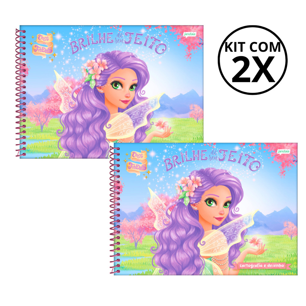 Kit Com 02 Caderno De Desenho Universitário Conto De Fada 80 Folhas - Jandaia
