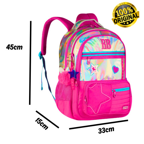 Kit Mochila de Costas ,Lancheira e Estojo Rebecca Bonbon Holo Shine Cor:Rosa