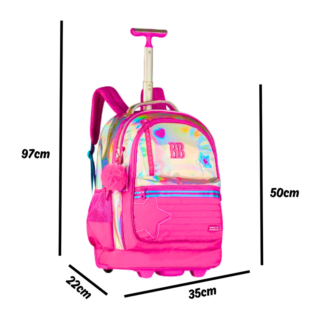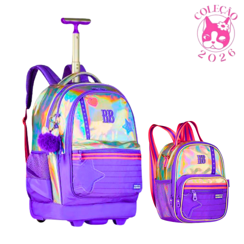 Kit Mochila de Rodinhas com Lancheira 2 em 1 Rebecca Bonbon Holo Shine