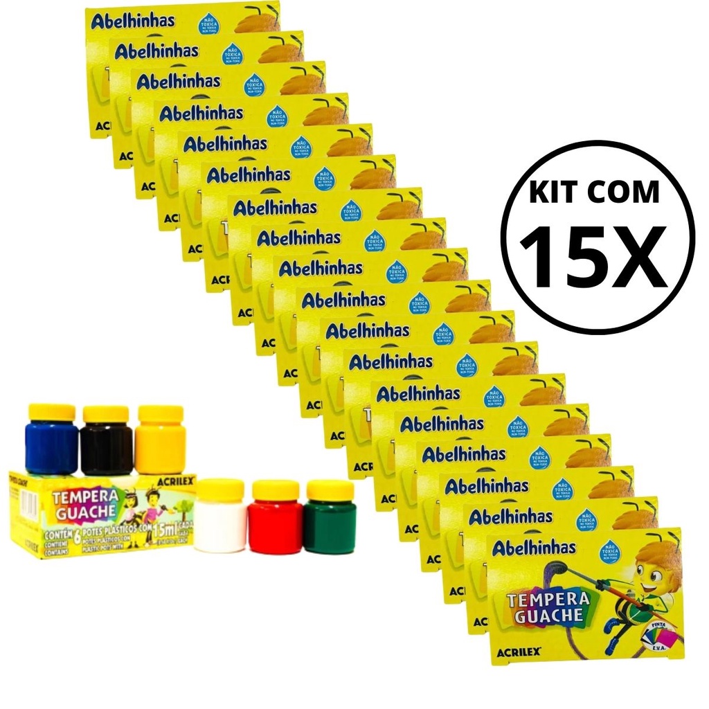 Kit 15 Tinta Guache Acrilex Com 06 Cores -15ml Cada pote