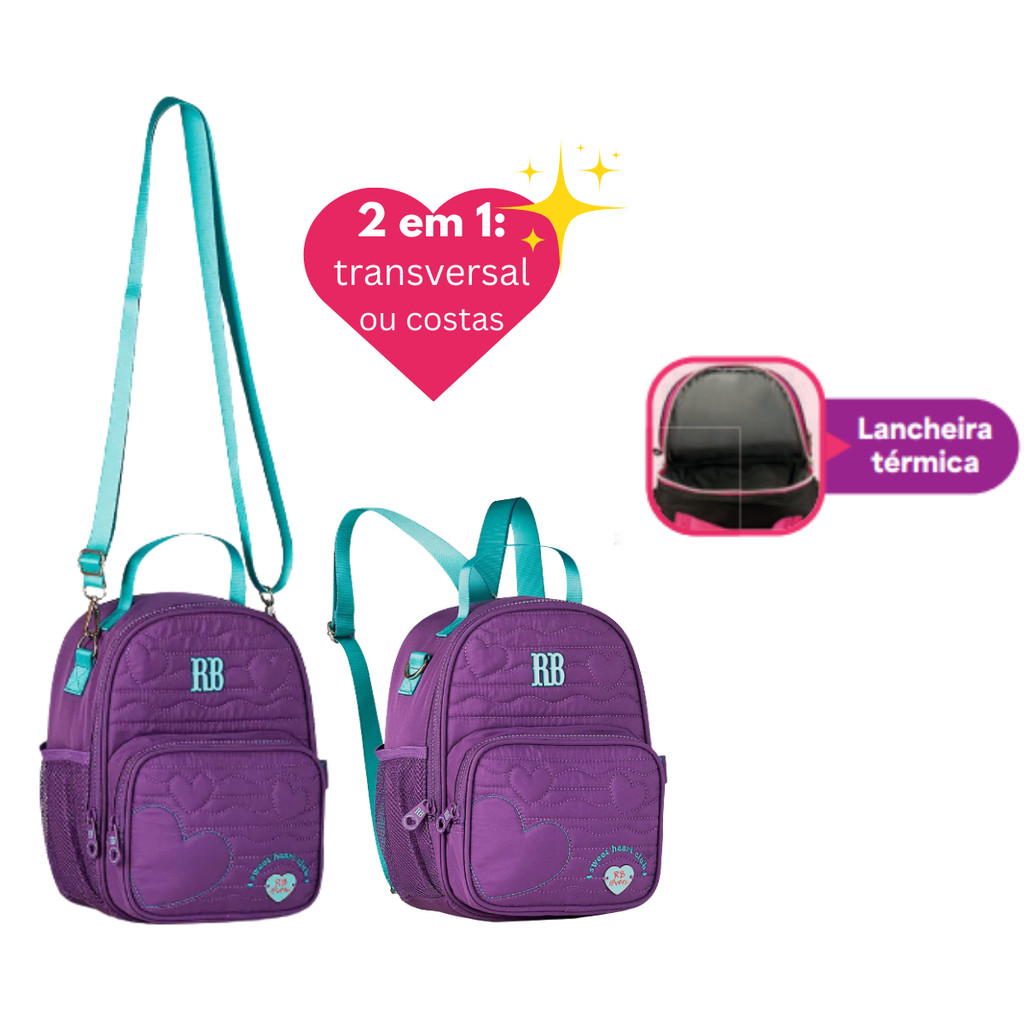 Lancheira Térmica 2 em 1 Rebecca Bonbon Heart Beats Cor:Rosa