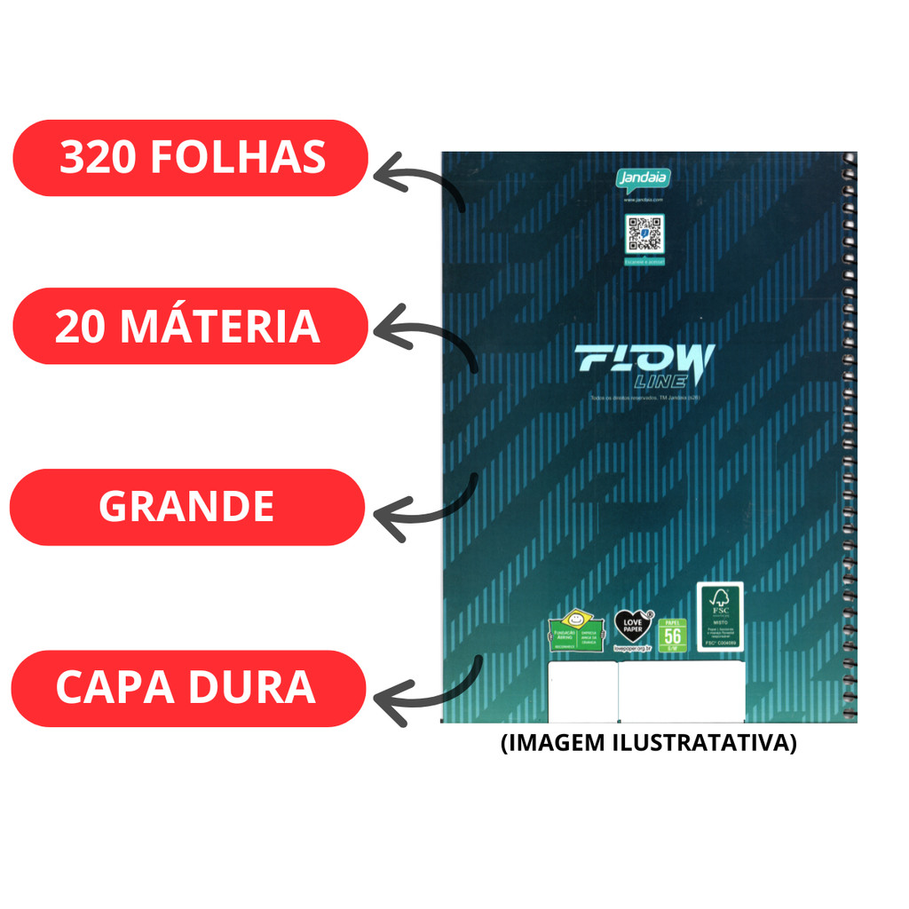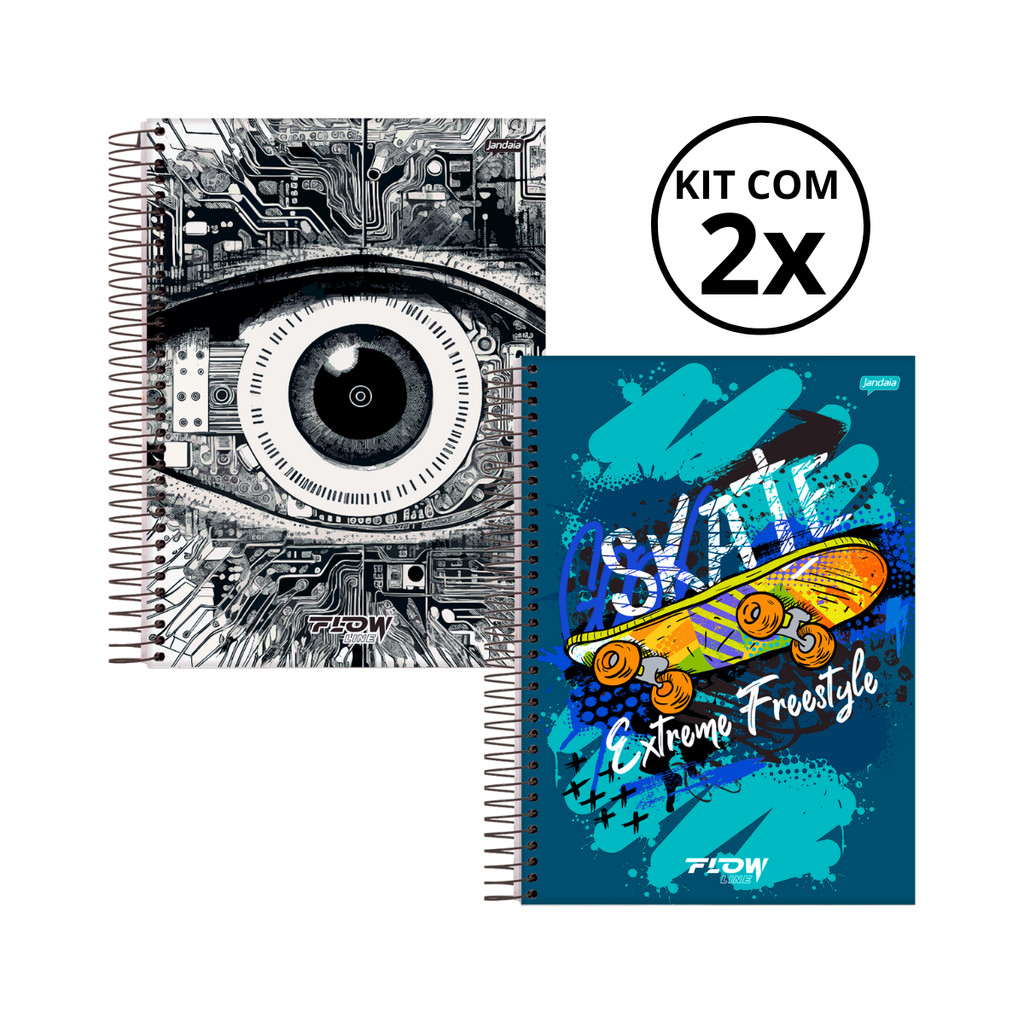 Kit 02 Cadernos Universitário 20 Matérias 320 Folhas Flow - Jandaia