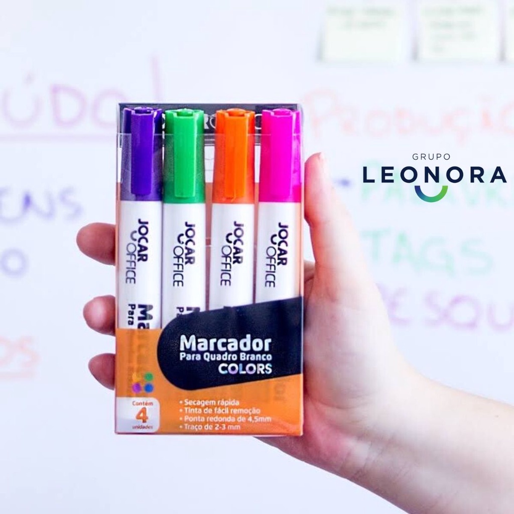 Kit 04 Marcador De Quadro Branco Colors + Apagador - JOCAR OFFICE