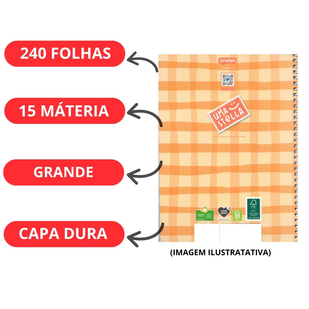 Caderno 15 Matéria Universitario Feminino 240 Folhas Stella - Jandaia' MODELO:FLOR