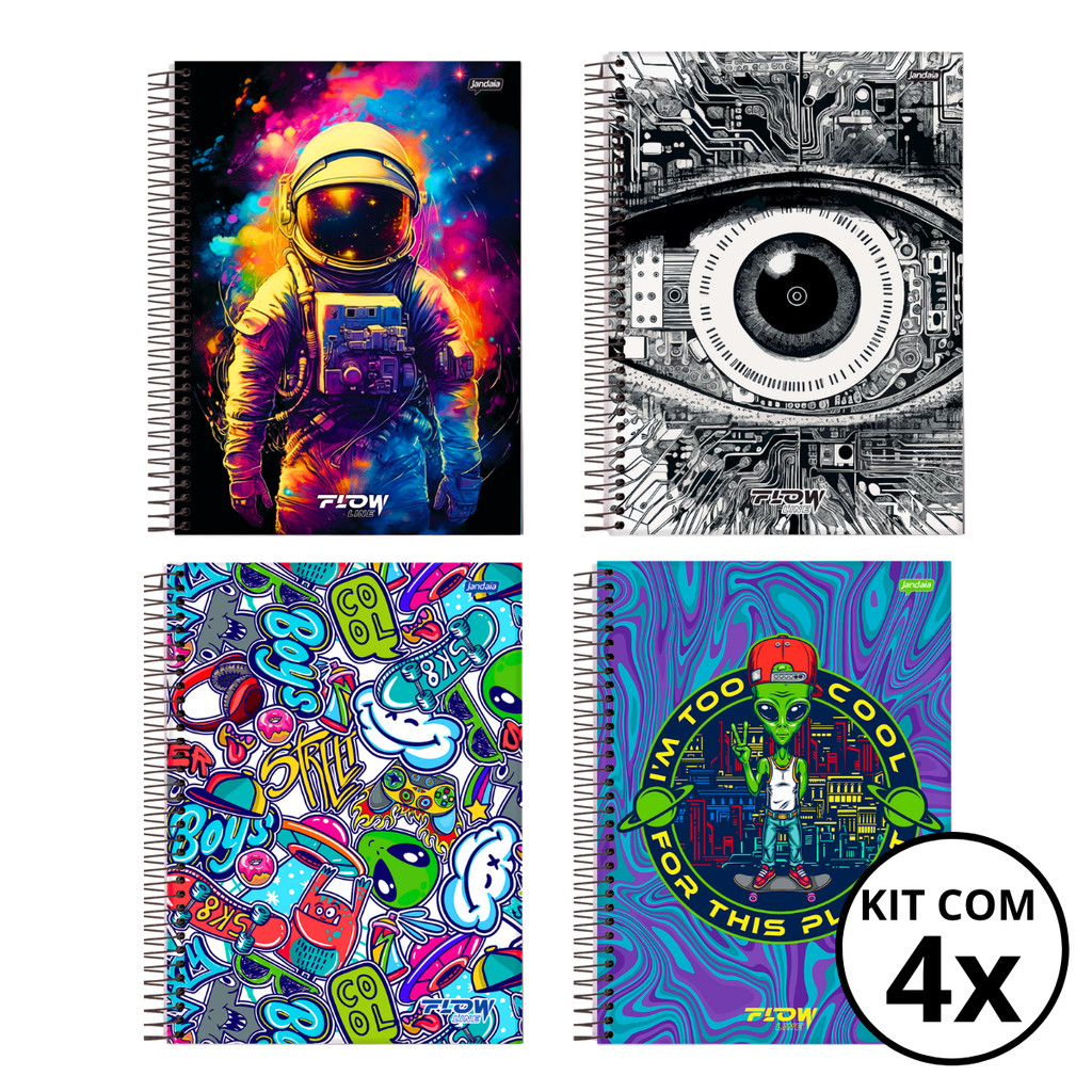 Kit 04 Cadernos Universitário 15 Matérias 240 Folhas Flow - Jandaia