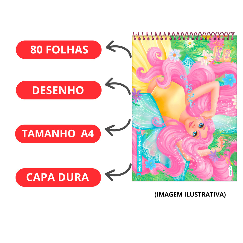 Caderno De Desenho Universitário Conto De Fada 80 Folhas - JANDAIA Capa:ROSA